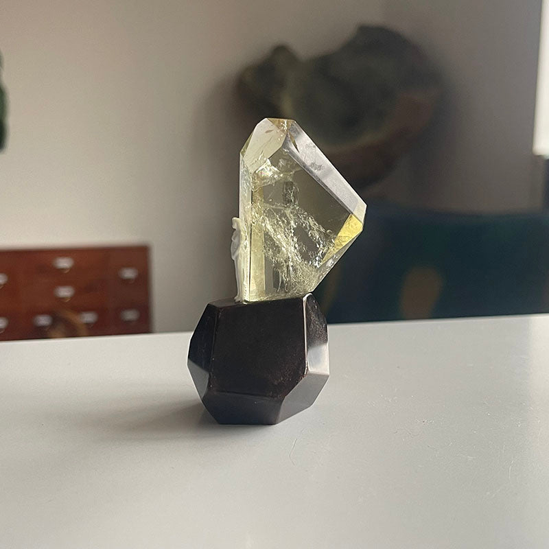 Üzerinde amorf, berrak, yelkene benzeyen bir Limon Kuvars.