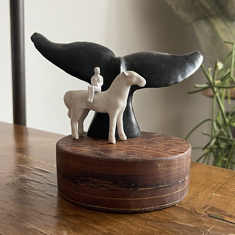 Ahşap kaide üzerinde, Shona sanatçısı Emmanuel Madzivanyika’nın Spring taşından ustalıkla şekillendirdiği balina kuyruğu, güç ve zarafetin izlerini taşıyor. Heykelin ön kısmında bulunan porselen at figürü, muradı ve hareketi simgeliyor.