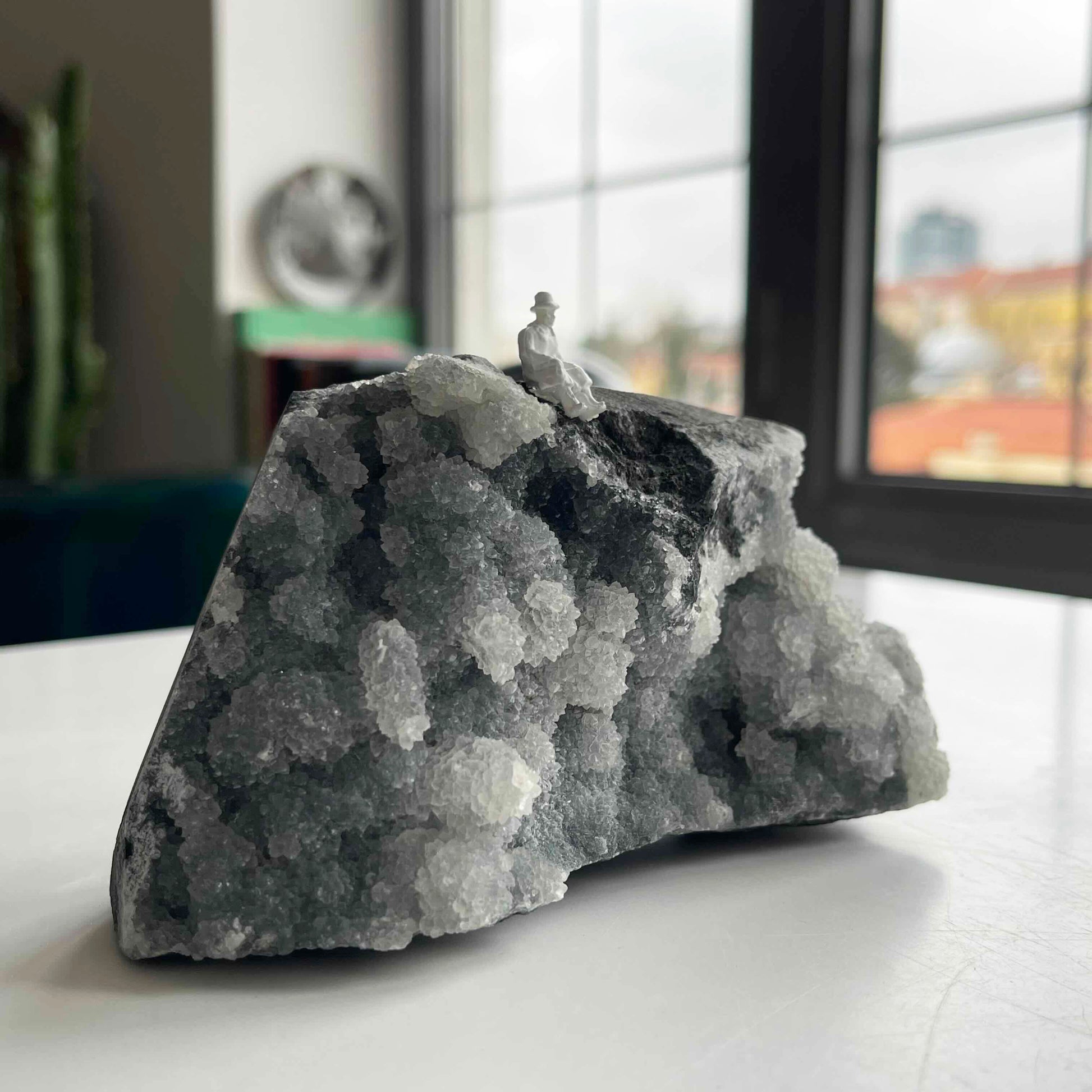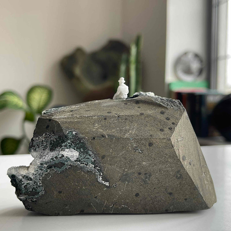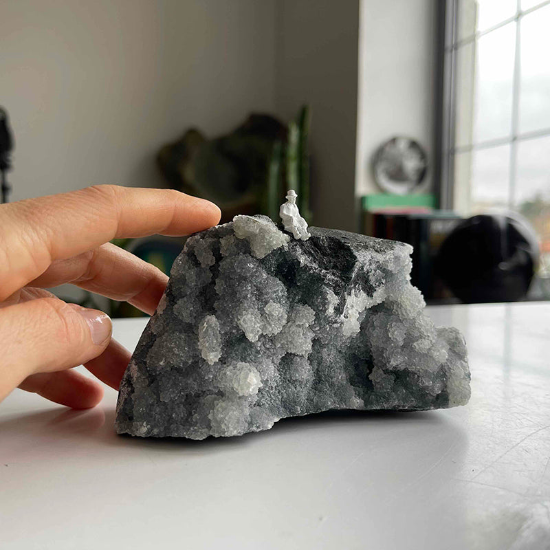 This work represents a journey into the inner world of man and the depths of the universe. The figure sitting on the rocks symbolizes solitude and silence and is a call to celebrate the inner richness and thinking capacity of man.