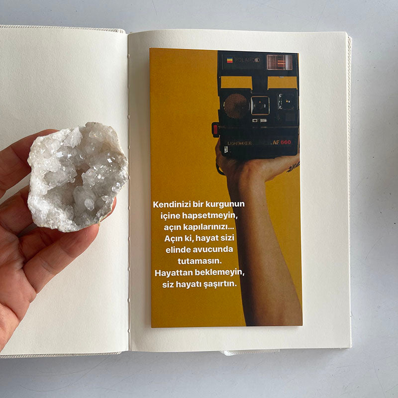 Kendini bilme süreci çoğu zaman zihnin sakinleşmesiyle başlar. Düşünceler netleştiğinde insan kendini daha açık şekilde gözlemleyebilir. Bu nedenle Kalsit taşı ile yazma pratiği bir araya getirildiğinde, kişinin hem iç dünyasını gözlemlemesi hem de düşüncelerini ifade etmesi için destekleyici bir ortam oluşur.