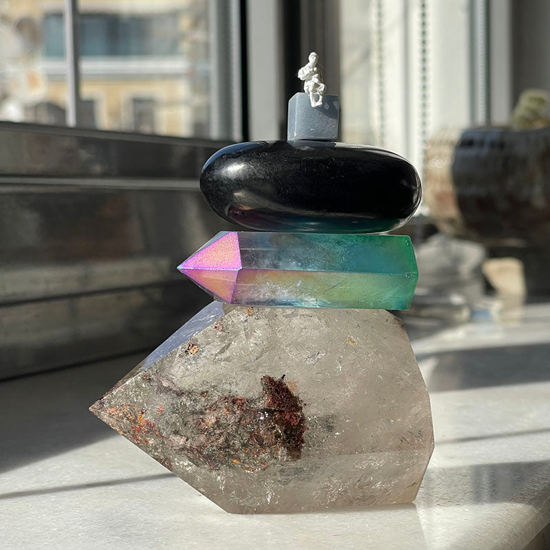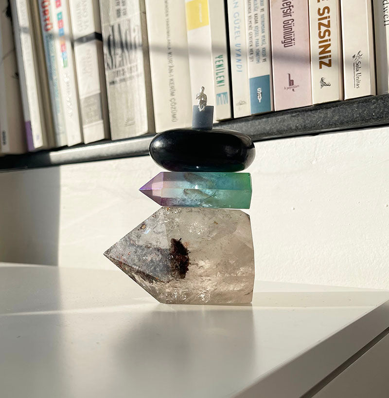 En üstteki zen taşı Şungit ise, tüm bu süreçlerin içinden geçip gelinmiş ve artık kimseye kendini ispatlamaya ihtiyaç duyulmayan, sade, güçlü, dengede kalınan zamanları temsil ediyor.