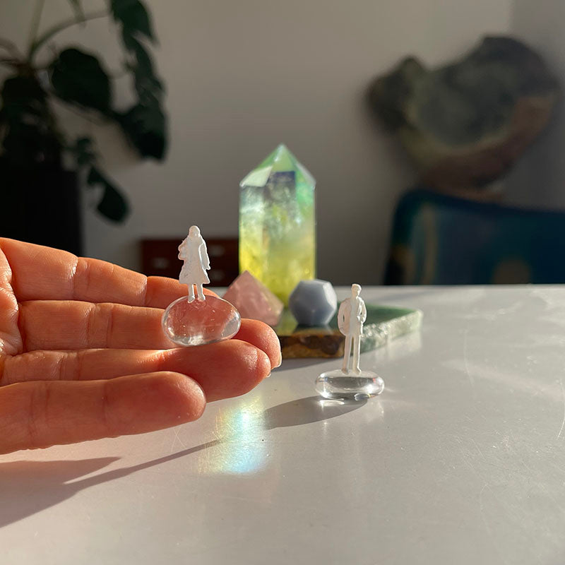Kristal Kuvarsların üzerinde bir kadın ve bir erkek figürü bulunuyor.