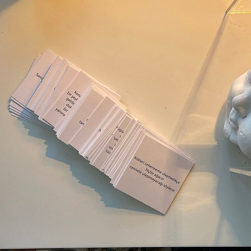 Sehpanın üzerinde yer alan 60 günlük ilham kartları, kahve keyfinize anlam katmak ve günlük düşünce ilhamı sunmak için sizi sorgulamaya davet ediyor...