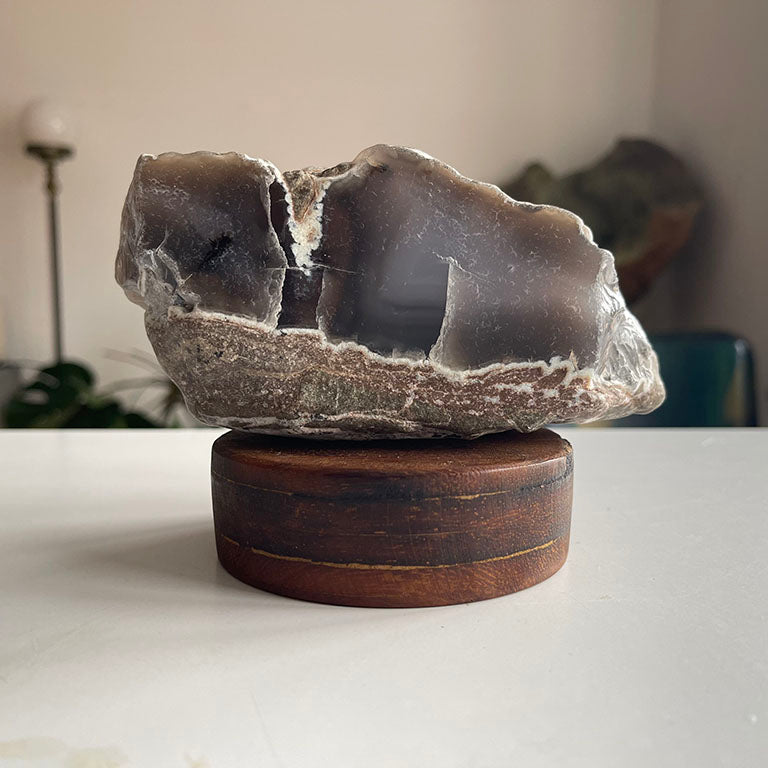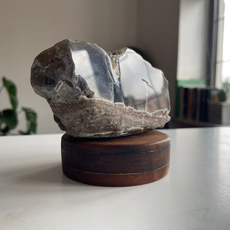 Yemen’den gelen bu ham Akik, doğal toprak tonlarıyla sonbaharın dinginliğini yansıtır. Kahverengi, koyu kızıl ve bej renk geçişleri, doğanın döngüsünü ve toprağa dönüşü hatırlatır. Dekoratif olarak bulunduğu ortama sıcaklık ve doğallık katarken, sade bir köşede bile dikkat çeken bir merkez haline gelir.