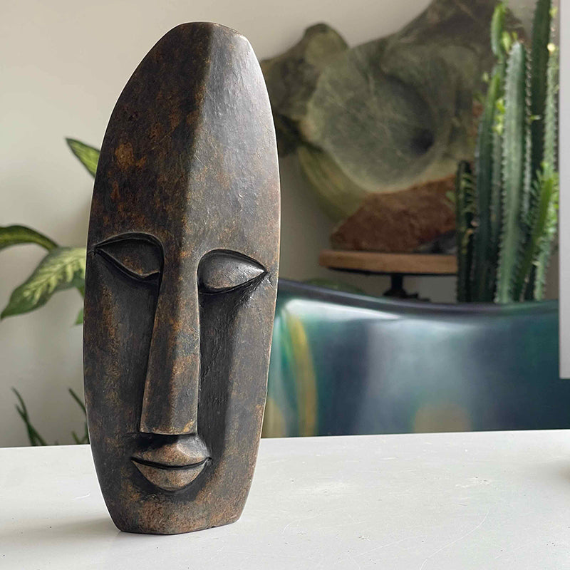 Sabun taşından elde oyularak yapılmış Shona sanat akımına ait bir Afrika heykeli.