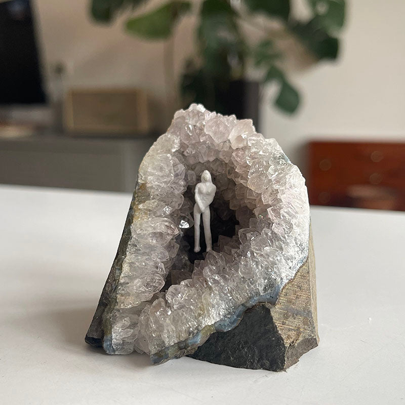 Ametist kaya, kadının kendi içinden ördüğü bir alanı temsil ediyor. Ametist burada bir “taş” olmaktan çıkıp içsel düzeni ve duygusal güveni temsil ediyor.