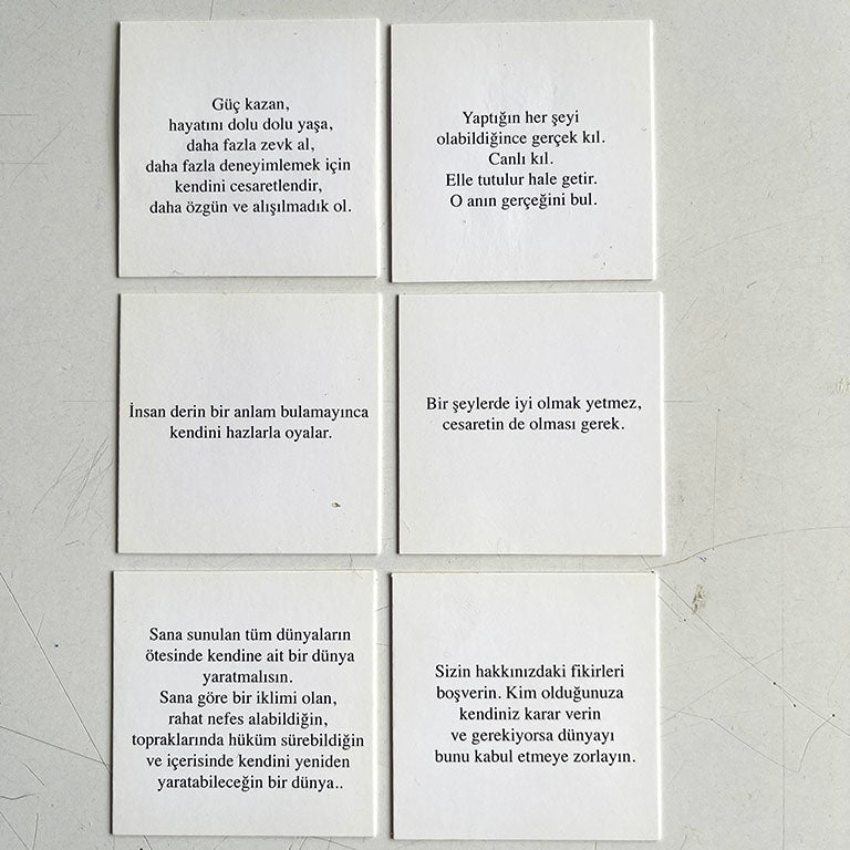 Kartlar ise bazen bir kelimeyle, bazen bir cümleyle sizi merkeze geri çağırır.