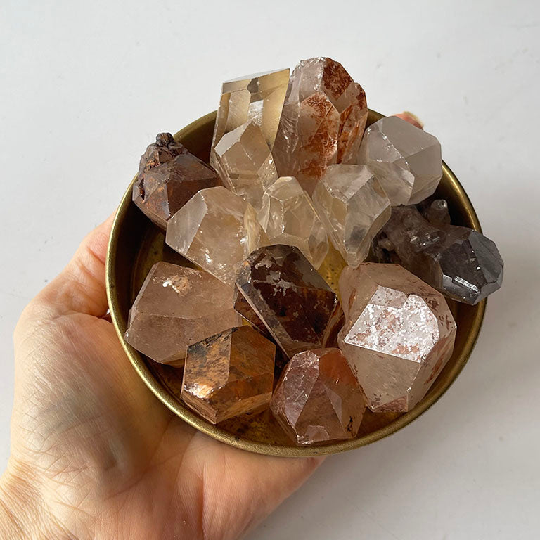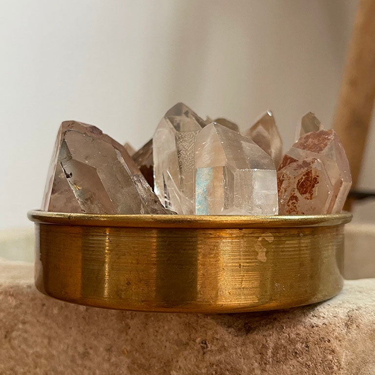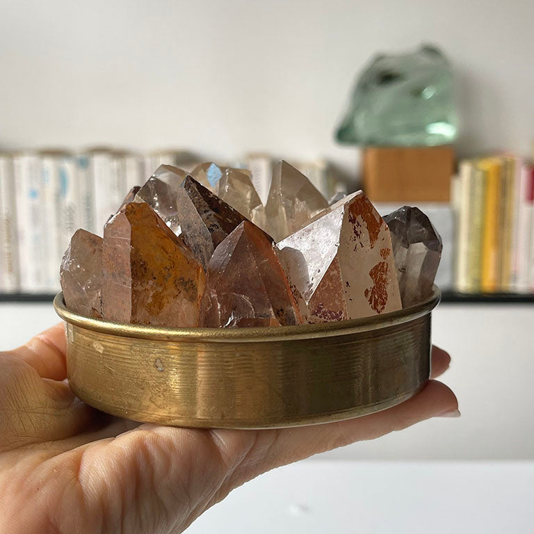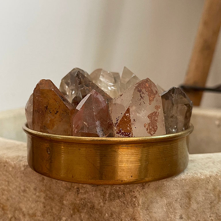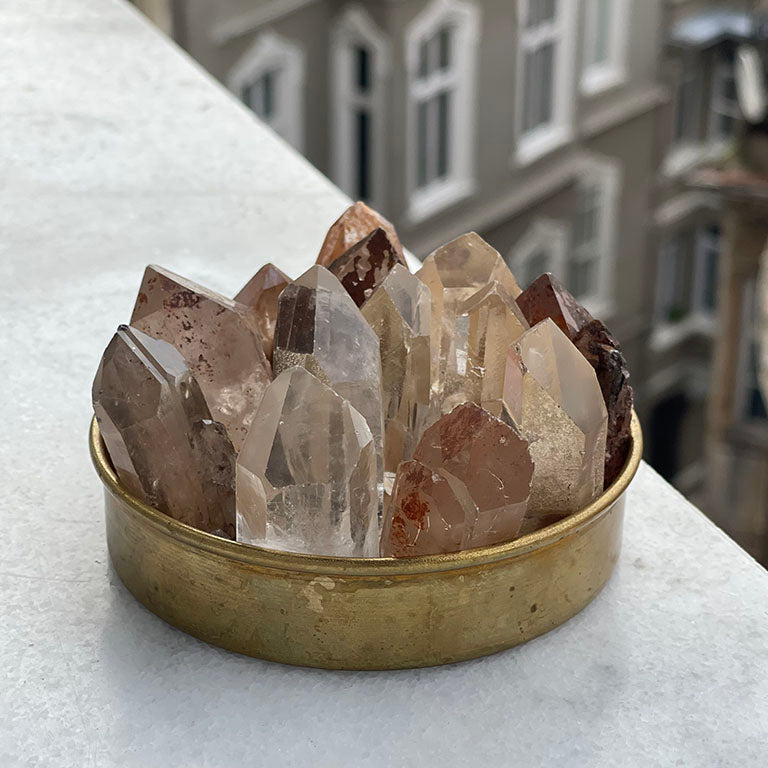 Pirinç kasede bir araya gelen bu üç taş saf, yoğun ve doğal bir alan oluşturur. Portakal Kuvars sıcaklığı ve yaşam enerjisini yükseltir. Dumanlı Kuvars ağır duyguları indirir, zihni toparlar. Kristal Kuvars ise tüm bu akışı berraklaştırır ve yükseltir. Taşların sivri uçlarının doğal hali, görsel olarak güç ve özgünlük katar. Hiç dokunulmamış, işlenmemiş bir enerji hissi yaratır.