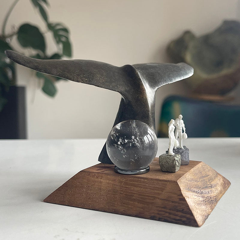 Sabun taşından oyularak yapılmış balina kuyruğu Shona sanatçısı E. Madziyankha'ya aittir ve imzalıdır. Shona, Afrika'ya ait modern taş sanatıdır. Balina kuyruğu şansı temsil eder.