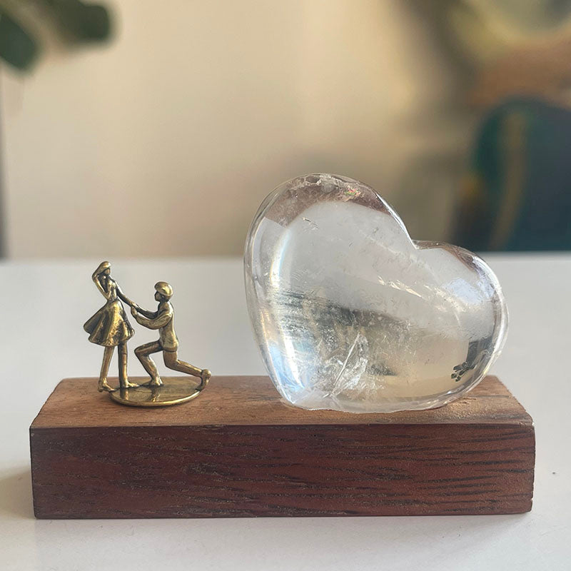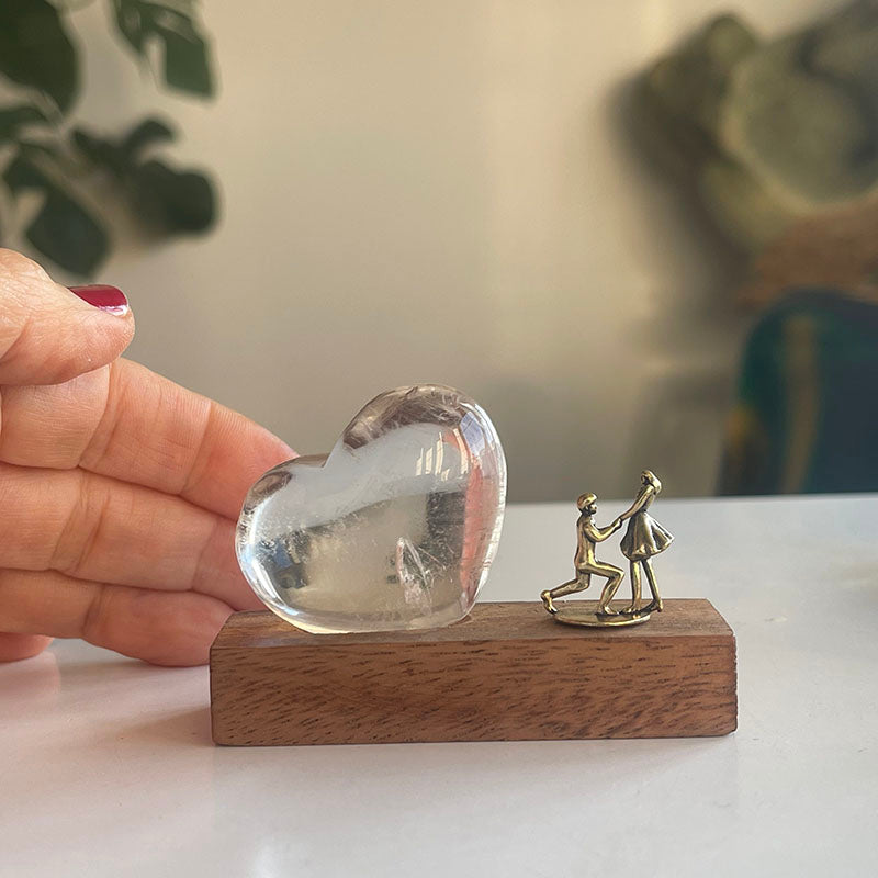 Yanındaki Kristal Kuvars, kalp formuyla aşkı, berrak görüntüsüyle de ilişkideki şeffaflığı temsil eder. Kristal Kuvars aynı zamanda ortamdaki enerjiyi ve kişinin frekansını yükseltir. Bu yolla motivasyon ve canlılık verir.