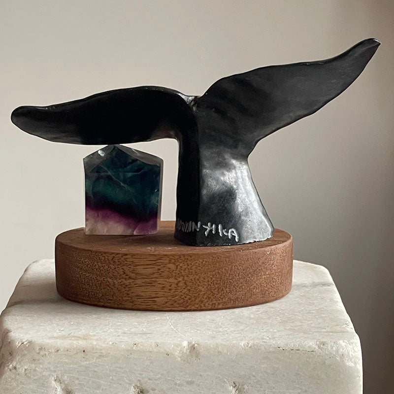 Sabun taşından oyularak yapılmış balina kuyruğu, Shona sanatçısı E. Madziyanyika'ya aittir ve imzalıdır. Shona, Afrika'ya ait modern taş sanatıdır. Balina kuyruğu şansı temsil eder.