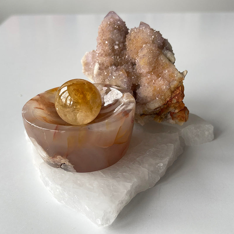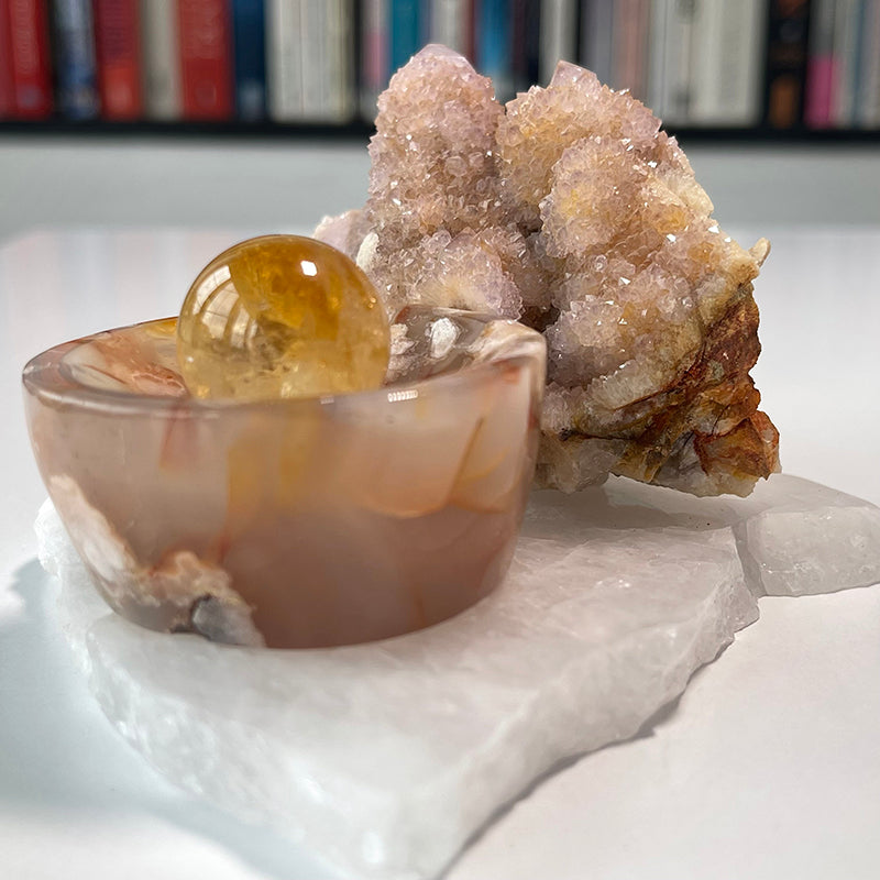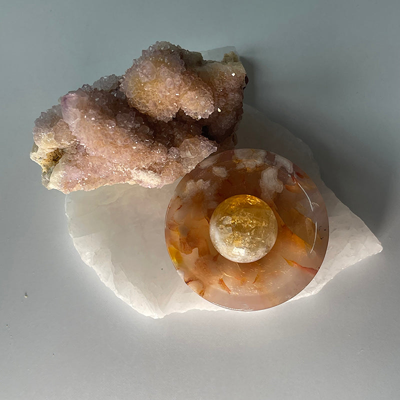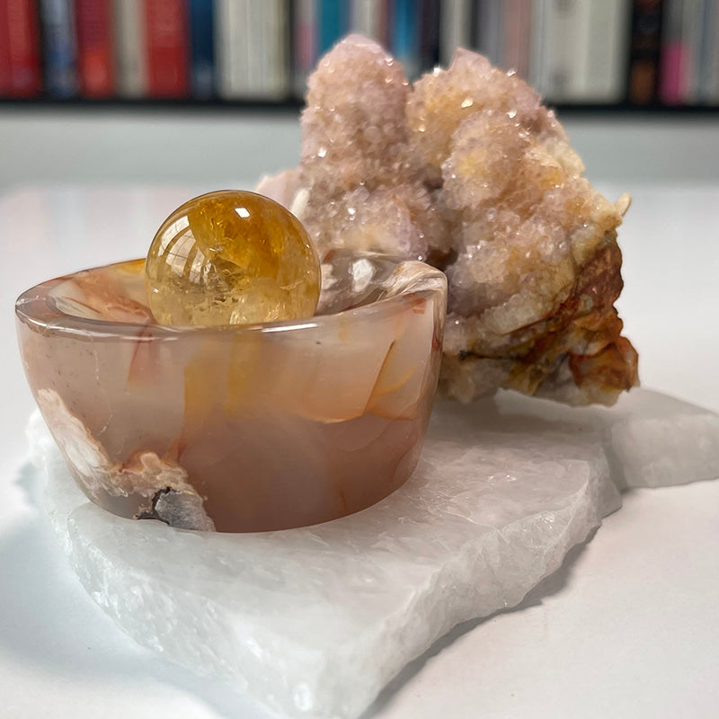 Küre formundaki Sitrin para taşı olarak bilinir. Bolluk ve bereketi çektiğine inanılır...
