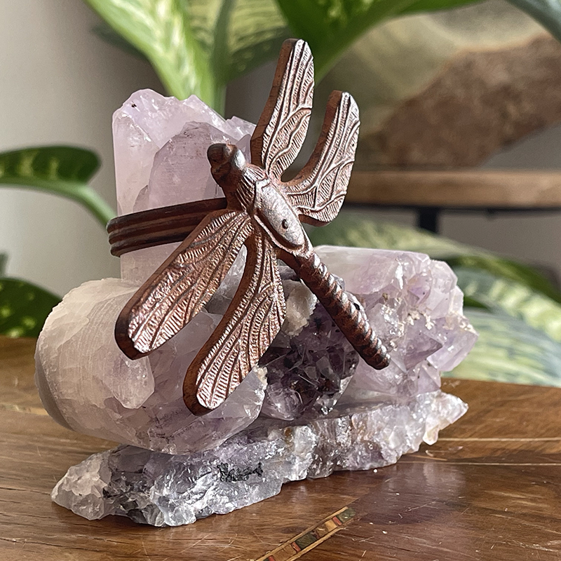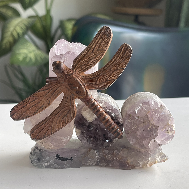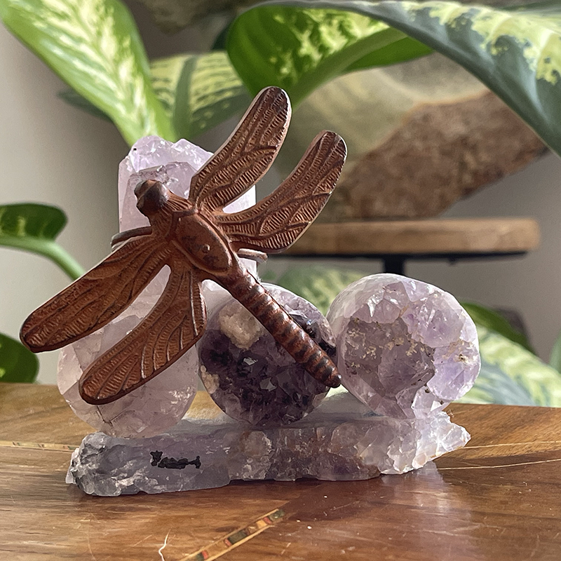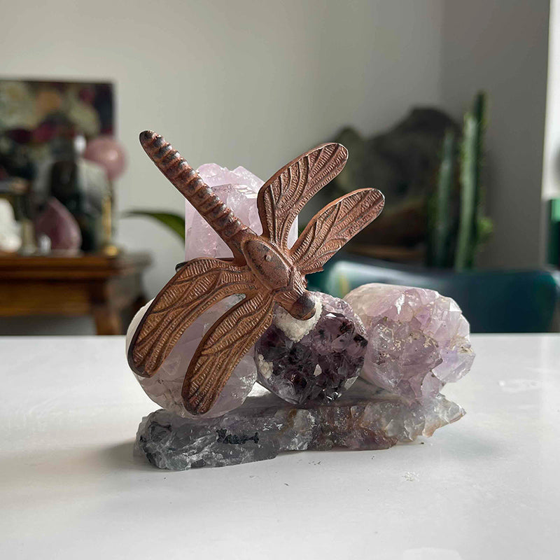 Florit kaide üzerinde silindir Ametistlerden oluşan çalışmayı, bilgeliğin sembolü olan metal Yusufçuk figürü tamamlıyor ve çalışmaya ismini veriyor.