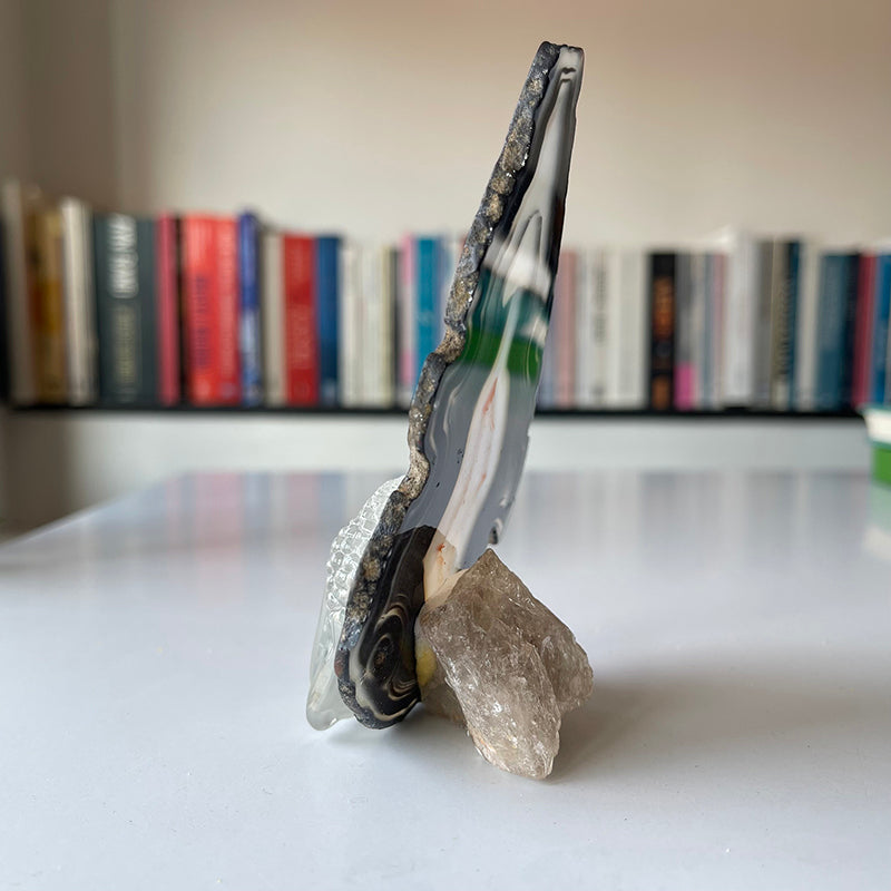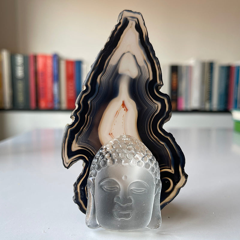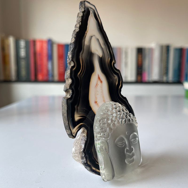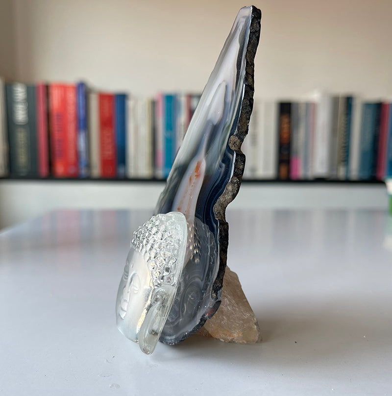 Buda'nın öğretileri ve doğanın enerjisiyle bütünleşen bu heykel, Akik, Kristal Kuvars ve cam Buda figürünün birleşiminden oluşur.