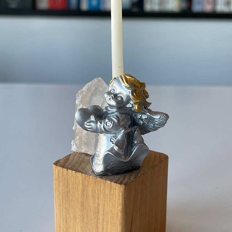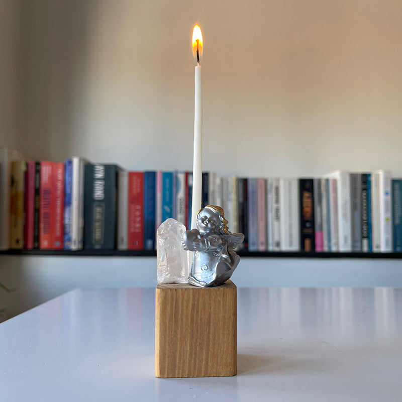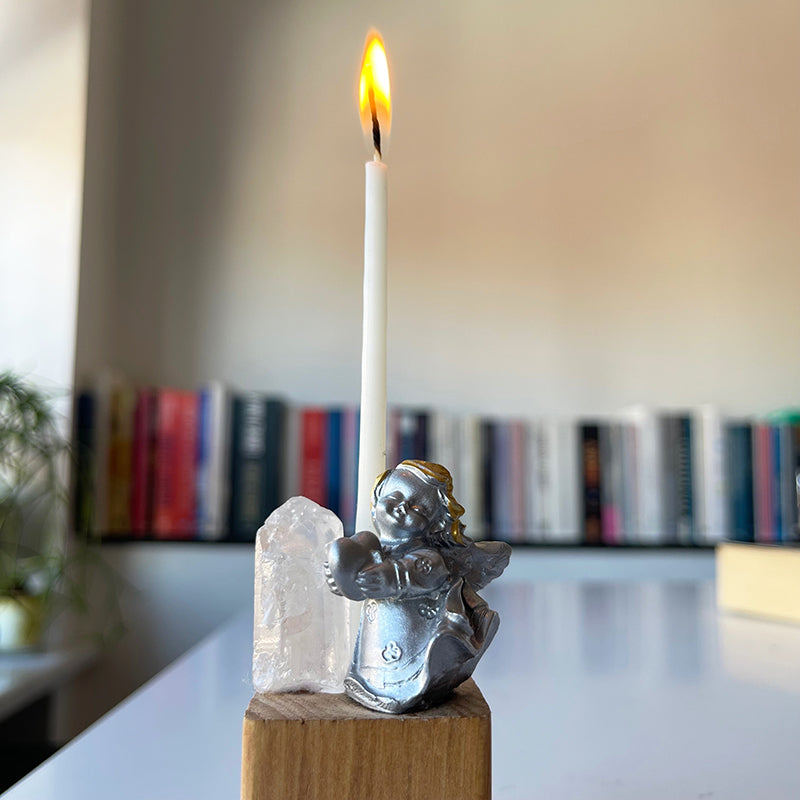Mum alevi, melek figürünün ışıltılı kalbine yansıyarak mistik bir atmosfer oluşturur. Mum ışığının yanı sıra kristal enerjisi de etkileşime girerek, ruhunuzu besleyen ve sakinleştiren bir deneyim sunar. Bu tasarım, mistik dünyanın ve ruhani enerjinin sevgi dolu bir hediyesidir.