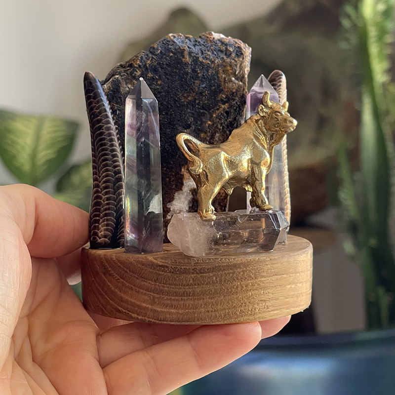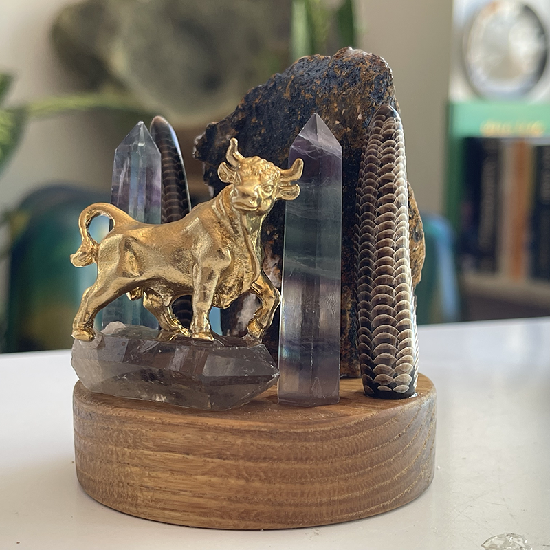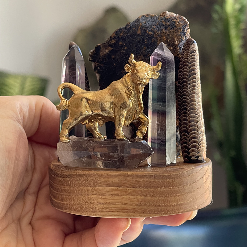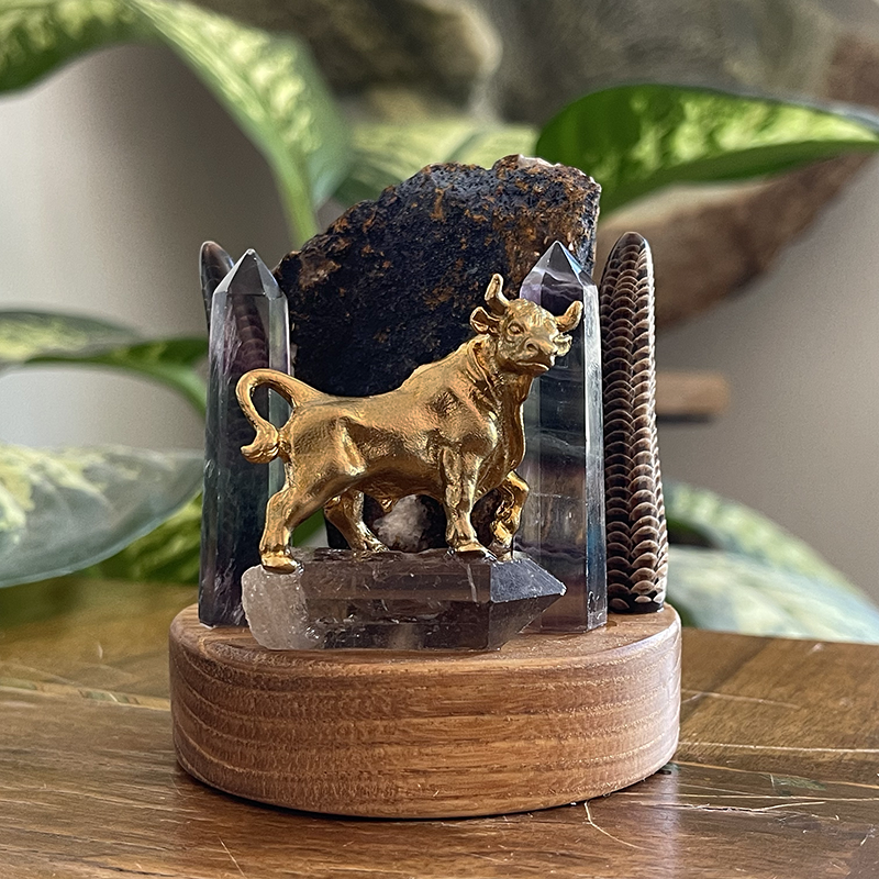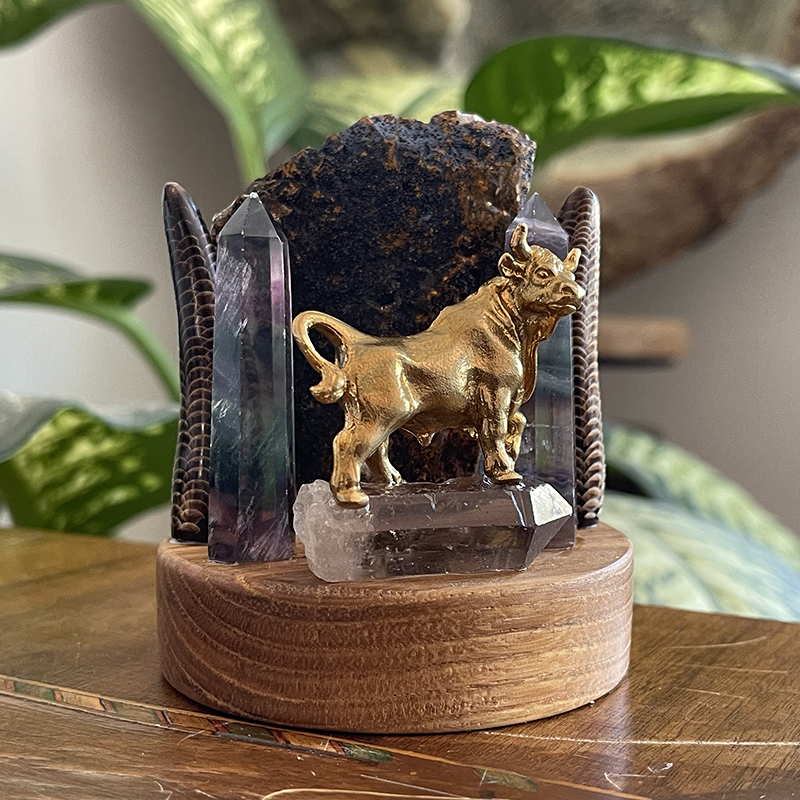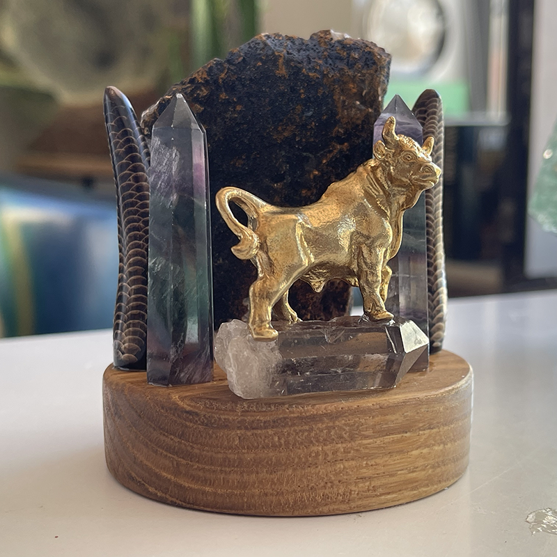 Heykelin ön kısmında, Dumanlı kuvars üzerinde duran, pirinç bir boğa figürü yer alır. Boğa, güç, kararlılık ve azmin sembolüdür. Antik çağlardan beri, boğa figürü kuvvet, direniş ve kararlılığı temsil etmiştir. Sütunlar ise, devrilmez güç ve dayanıklılığın simgeleridir. Bu sütunlar, her türlü zorluğa karşı ayakta kalmayı ve sağlam durmayı ifade eder.