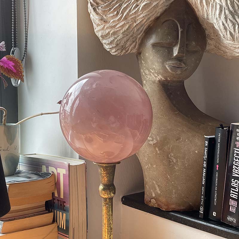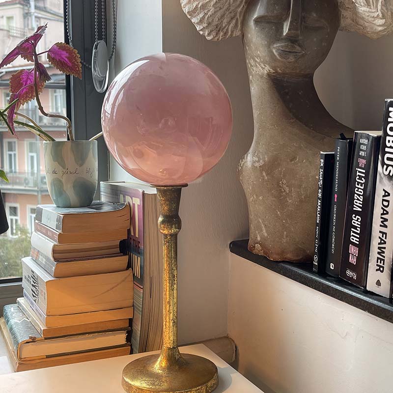Madagaskar'dan ülkemize yolculuk yapmış olan bu Pembe Kuvars küre, evinizin en güzel köşesinde, tüm zarafetiyle sizi karşılamayı bekliyor.