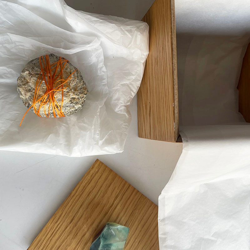Kutunun içinde kağıtlara sarılı, doğal kaya görünümünde bir Kalsit taşı bulunur. Taş turuncu bir lastikle bağlıdır. Dışarıdan bakıldığında sıradan ve kapalıdır. Lastik çıkarıldığında taş iki parçaya ayrılır. İçinden beyaz, ışıltılı bir yapı ortaya çıkar.