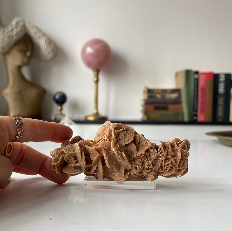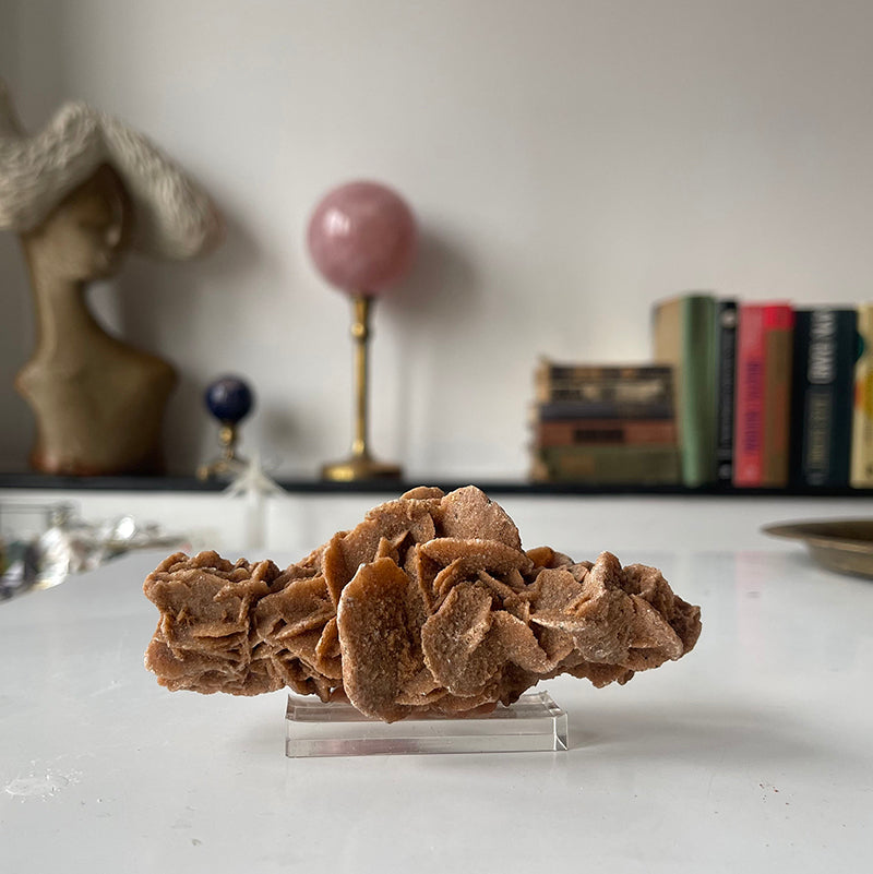 Bu taş kişinin ayaklarının yere basmasına ve dengede kalmasına yardımcı olan mükemmel bir meditasyon aracıdır. Zihinsel berraklığa, odaklanmaya, kendini ifade etmeye ve ilahi irademizin kilidini açmaya yardımcı olan kök, taç ve sakral çakralarımızı harekete geçirir. Kişinin aurasını ve çevresini temizlemeye yardımcı olduğu için yatağınızın yanına, çalışma alanınıza veya meditasyon odanıza yerleştirebileceğiniz bir taştır. Esas olarak Selenit bazlı olması nedeniyle, etraflarına yerleştirildiğinde diğer kristalleri şarj edecek ve temizleyecek yapıya sahiptir.. Çöl Gülü, sürekli bir enerji yenilenmesine ihtiyaç duyanlar için iyi bir seçenektir. Kişinin çakra sistemini yeniden düzenlemeye yardımcı olan çok yüksek, enerjik bir titreşim üzerinde çalışır.