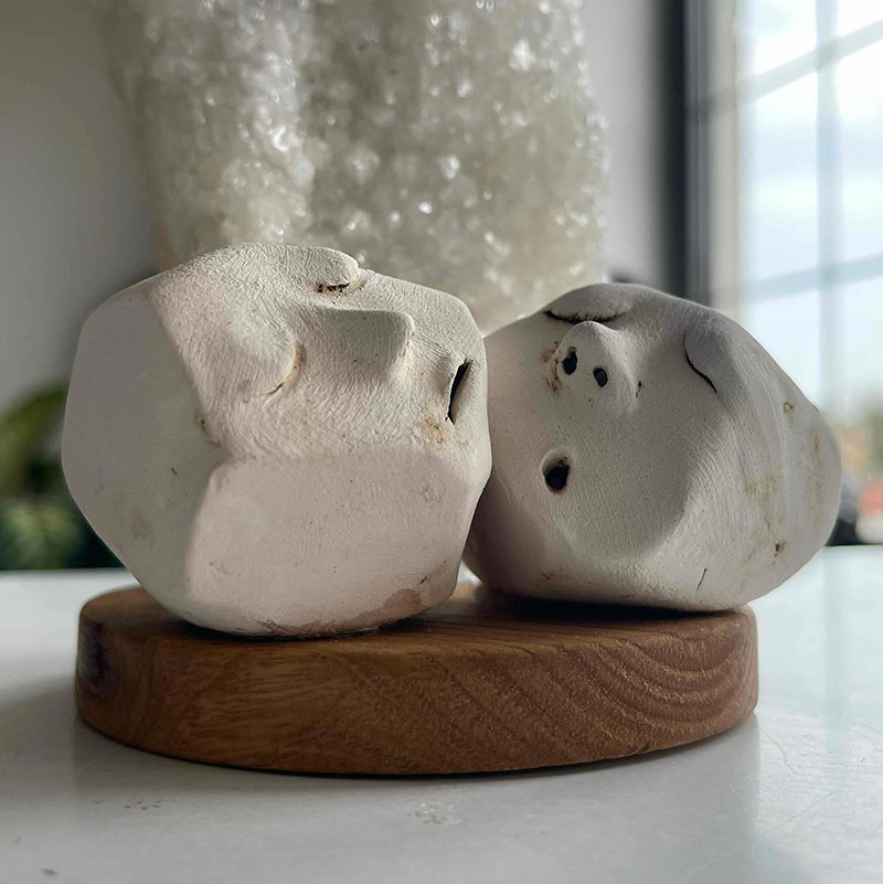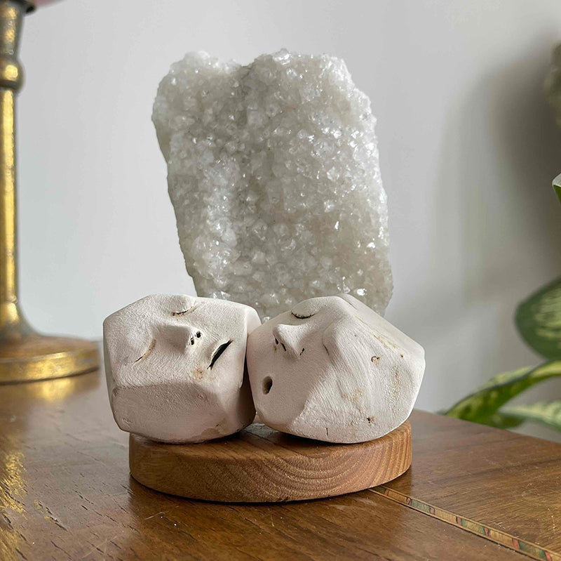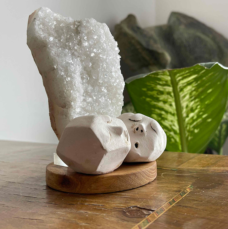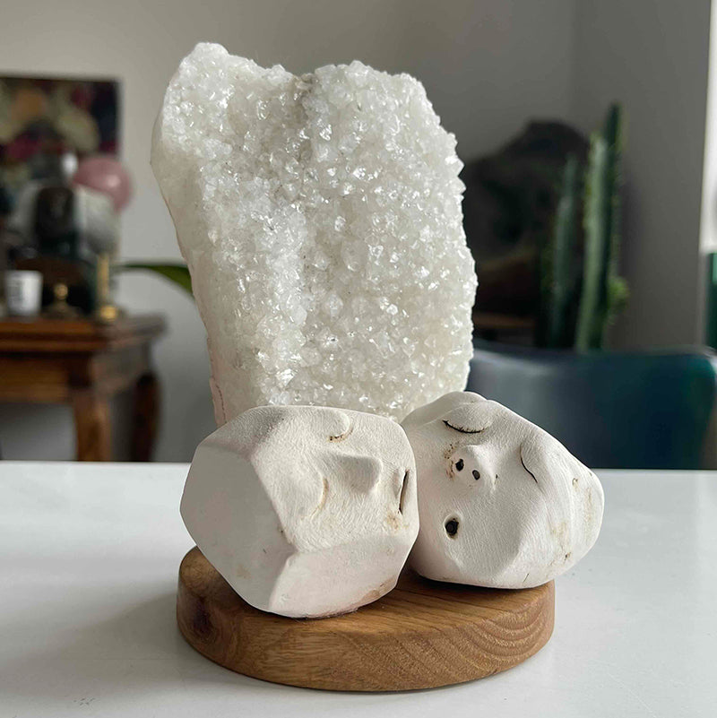 Ahşap kaide üzerinde Burcu Batmaz'a ait seramik figürler ve Kristal Kuvars kaya parçasından oluşan çalışma, birbirlerinin derinliklerine inen iki kişiyi tasvir ediyor..