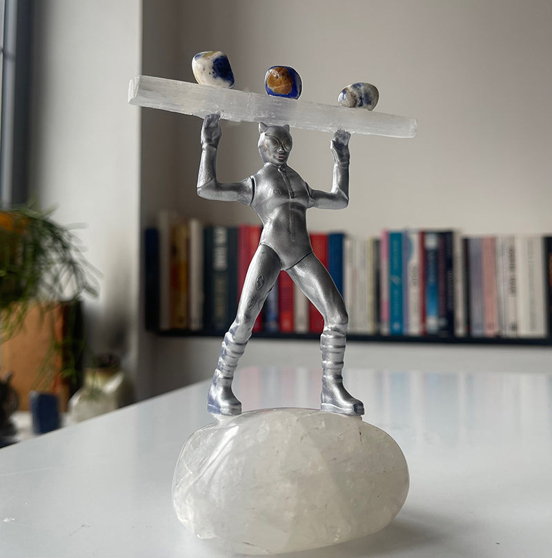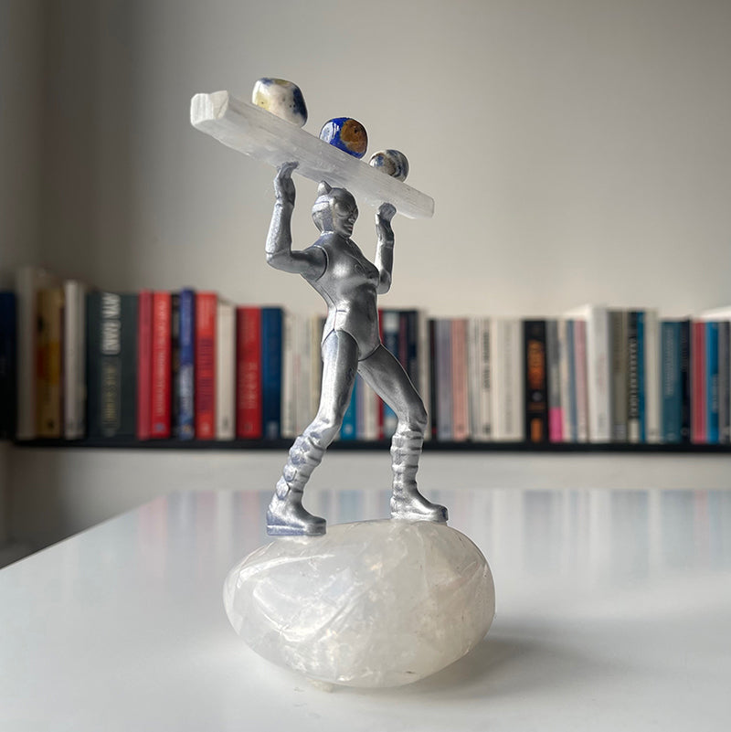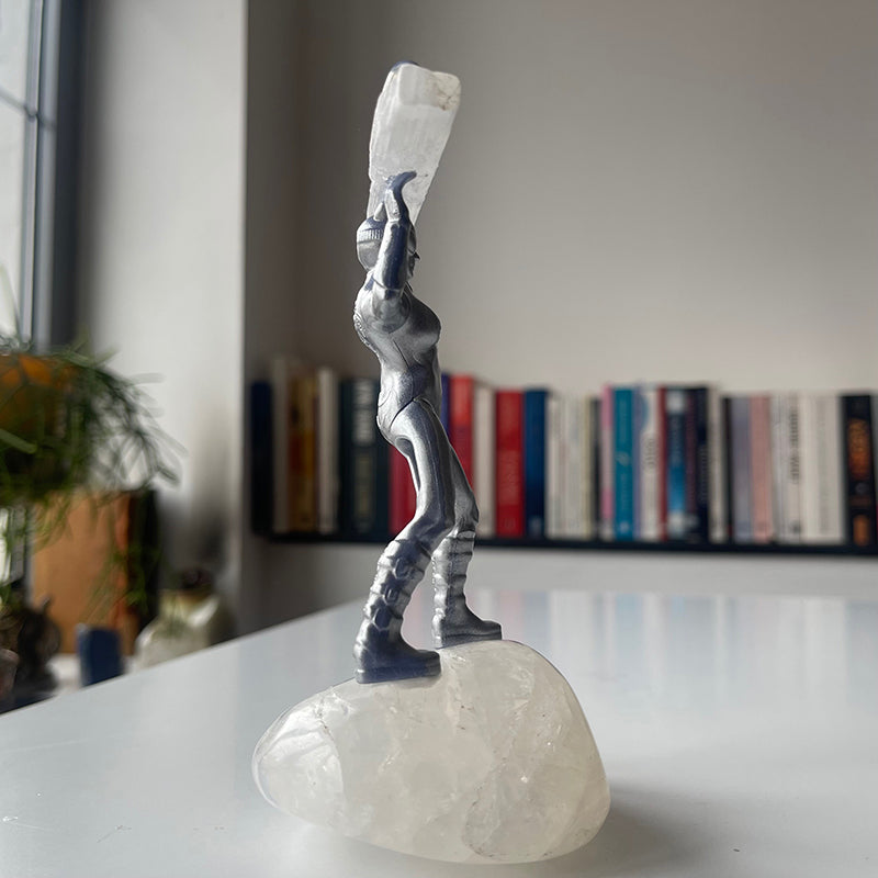 Uzaylının ayağının altındaki Ay Taşı olumsuz enerjilere karşı kalkan görevi görür ve kişiyi olumsuz enerjilerden korur. Ying ve yang enerjilerini dengeler. Yaşama sevinci verir. Nazara karşı koruma sağlar. Sezgileri ve iletişimi kuvvetlendirdiği bilinmektedir.