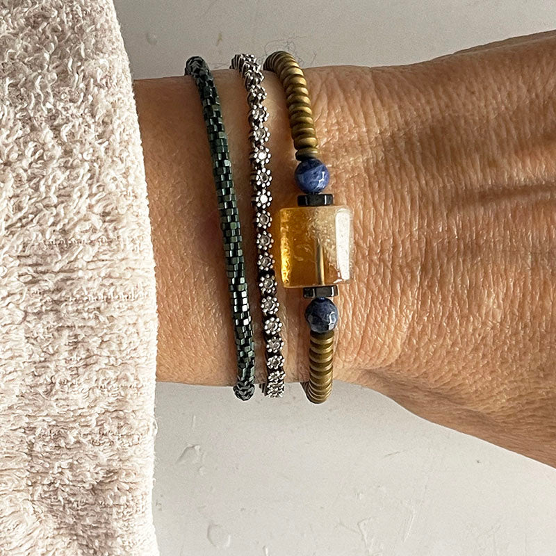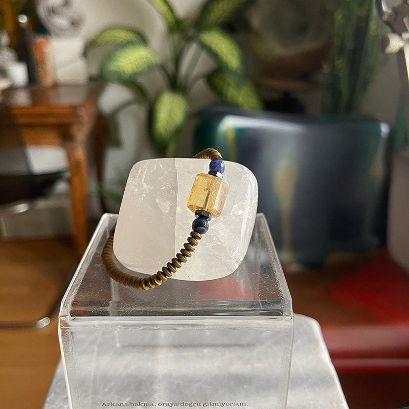 Sitrin : Bolluk ve bereketin simgesi olan Sitrin, pozitif enerjisiyle neşe ve motivasyon getirir. Kendinizi daha iyimser hissetmenizi sağlar ve hayatta hedeflerinize doğru adım atarken size destek olur. Kare formu, bilekliğin düzenli ve dengeli enerjisini güçlendirir.
