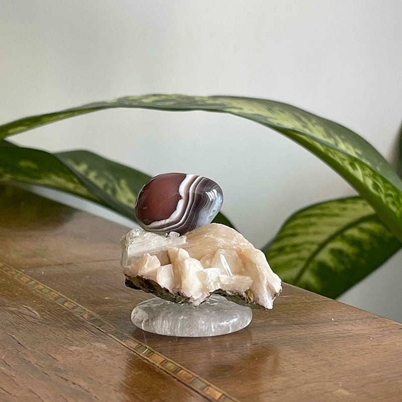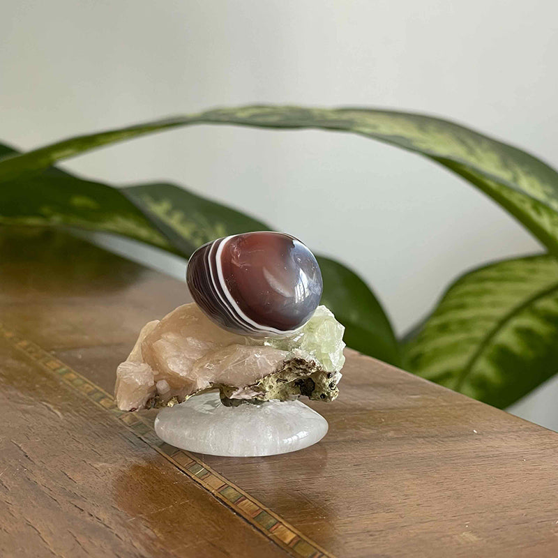 Daire formunda Kristal Kuvars, Apofilit ve Akik'ten oluşan çalışma tam bir detoks kaynağı.