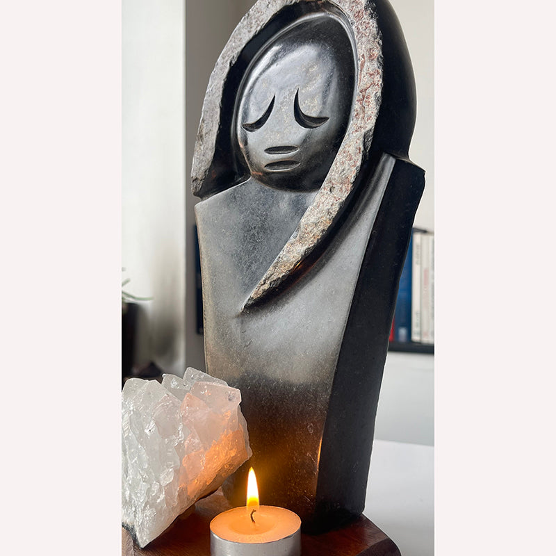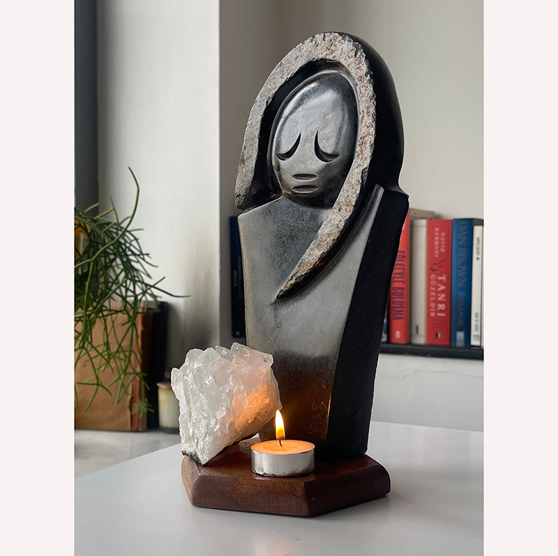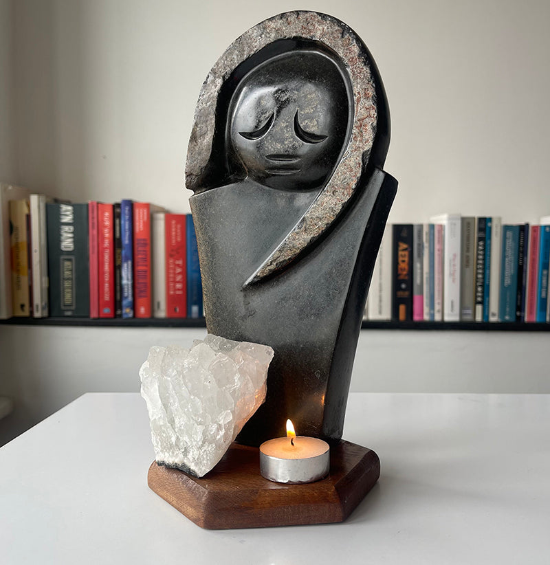 Springstone taşından elde oyularak yapılmış kız heykeli Zimbabve'ye ve Shona sanat akımına aittir. Zimbabve kültüründe koruyucu tanrısal ruhlar taşların içinde yaşar ve taş heykeller yaşam alanlarında bulundurulduğu sürece kişiyi ve aileyi korumaya devam ederler.