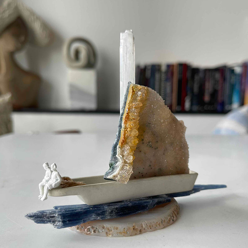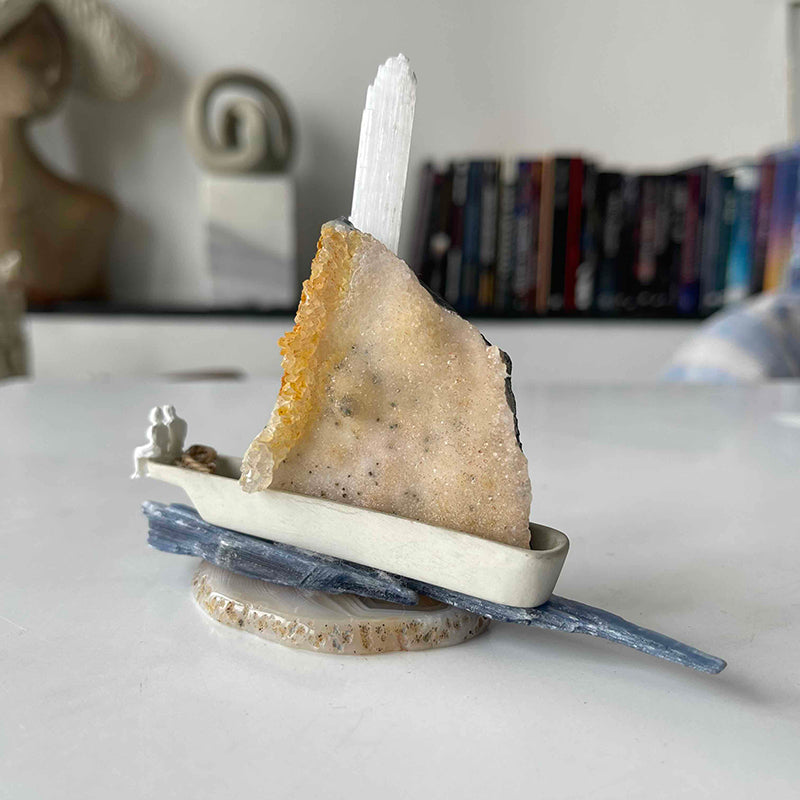 Teknenin yelkeni olan Sitrin Güneş'ten aldığı yüksek enerjisi ve bereketi çağıran özelliği ile bilinir. Zenginlik taşıdır.