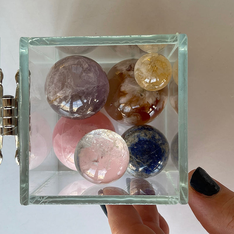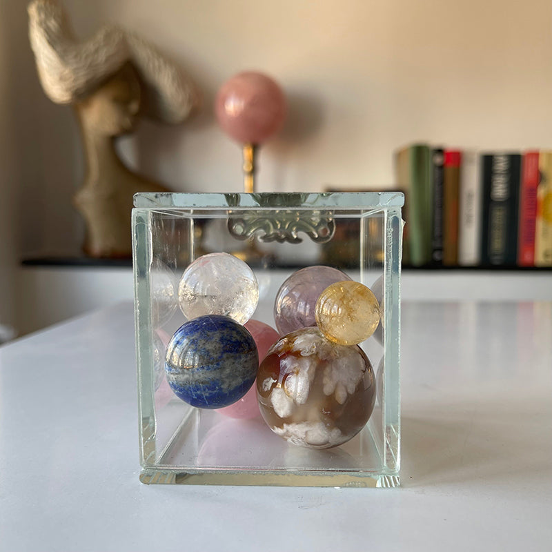Evlerimiz, içinde barındırdığı her detayla enerji yayar ve yaşam alanımızın ruhunu oluşturur. " Harmoni Kutusu," içinde bulundurduğu Kristal Kuvars, Lapis Lazuli, Akik, Ametist, Pembe Kuvars ve Sitrin küreleriyle sadece dekoratif bir zenginlik sağlamıyor, aynı zamanda taşların benzersiz enerjilerini evinize taşıyor. Doğanın en saf haliyle sunduğu bu enerji cümbüşü, hem estetik bir zenginlik, hem de içsel denge sunuyor.