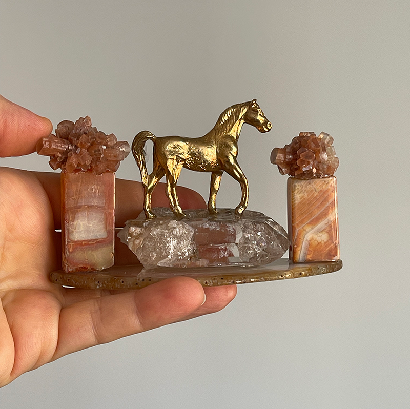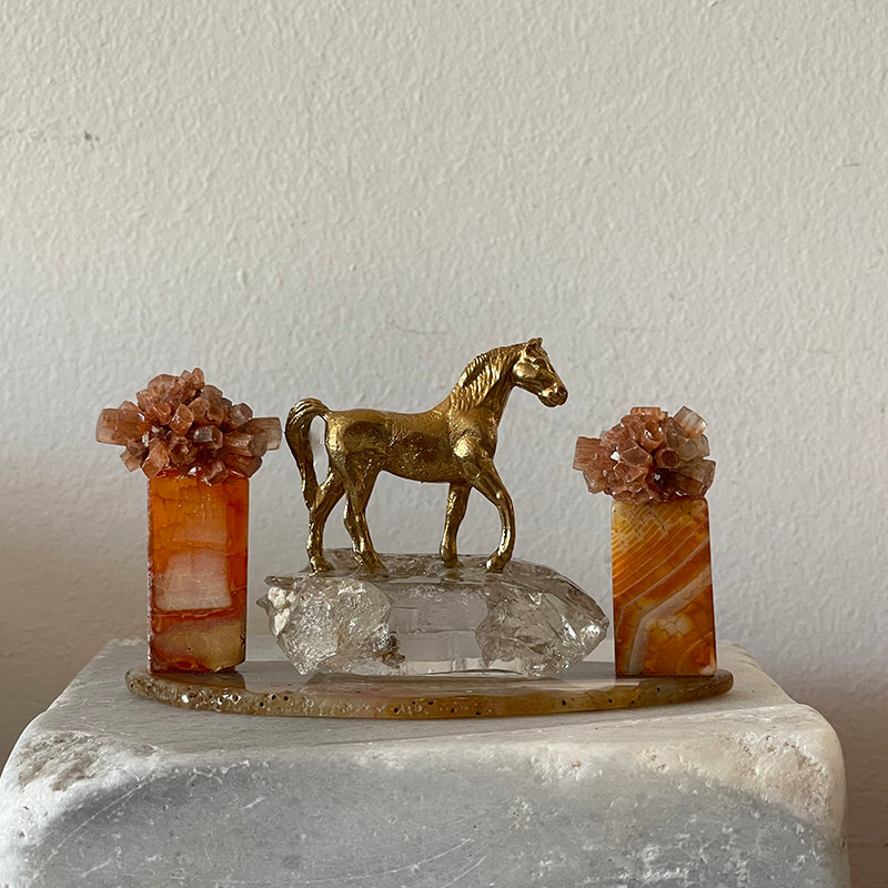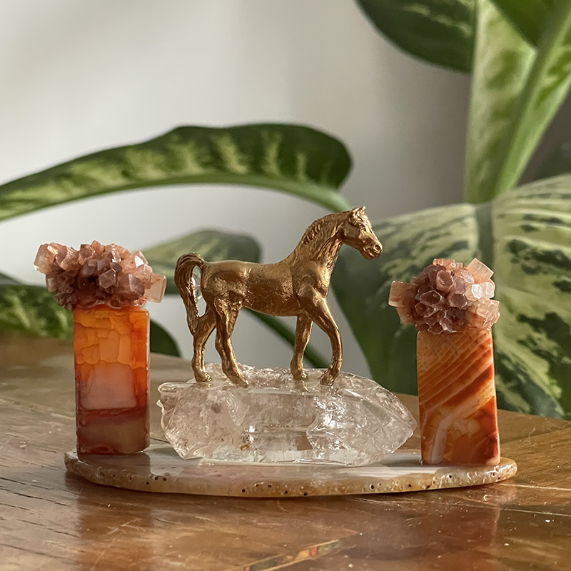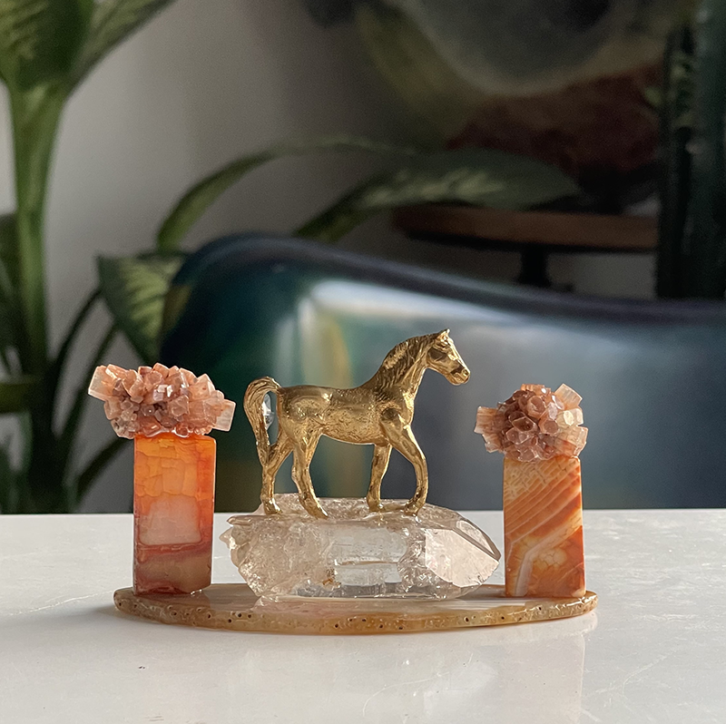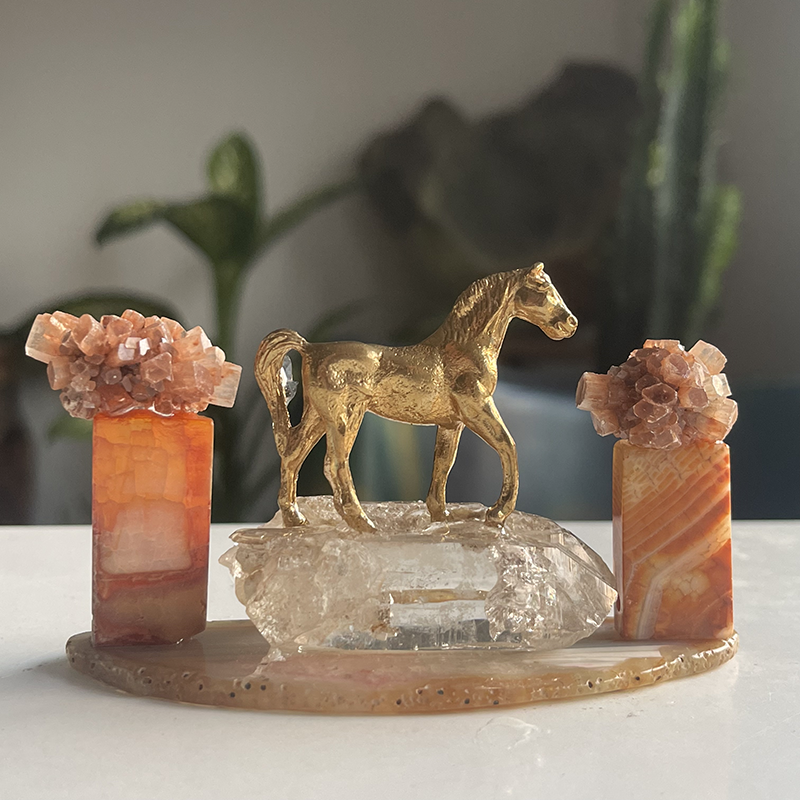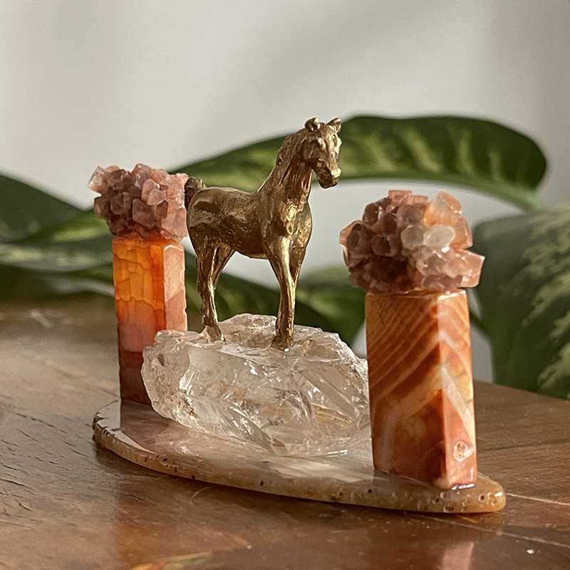 Bu heykelin ismi, hayatın her anı nıtutkuyla yaşamak ve güzelliklerini kucaklamaktan gelir. Çalışma, Akik kaide üzerinde berrak bir Kristal Kuvars'ın üstündeki zarif pirinç at figürü ile oluşuyor. Atın her iki yanında, dikdörtgen formda Karnelyan kaideler üzerine yerleştirilmiş çiçeği andıran Aragonit kristalleri bulunuyor.