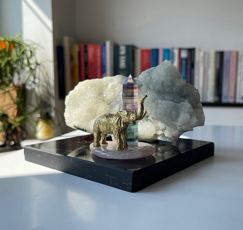 İyi Şans Totemi, kristal taşların gücünü sanatsal bir ifadeyle birleştirerek evinizi görsel zenginlik ve taşların yüksek enerjisiyle dolduracak bir tasarım. Hayatınıza iyi şansı ve bereketi çekmeniz, stilinize zenginlik katmanız için...