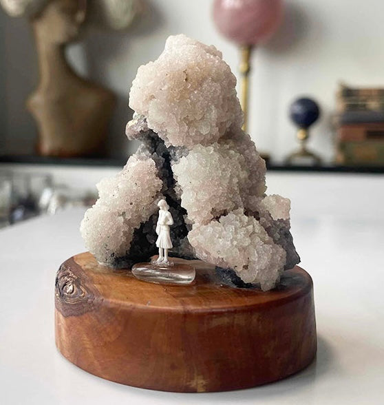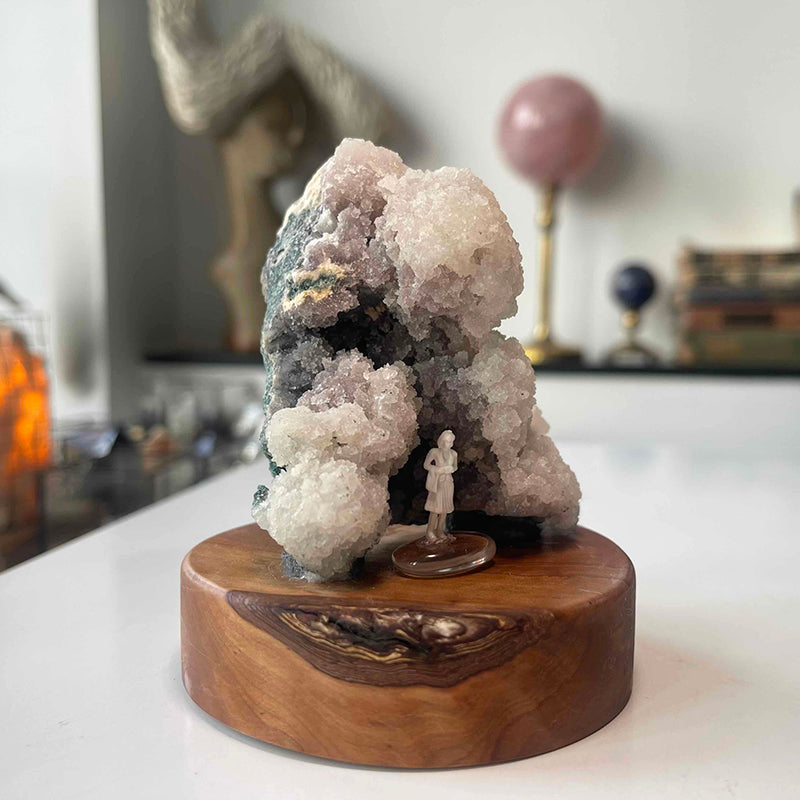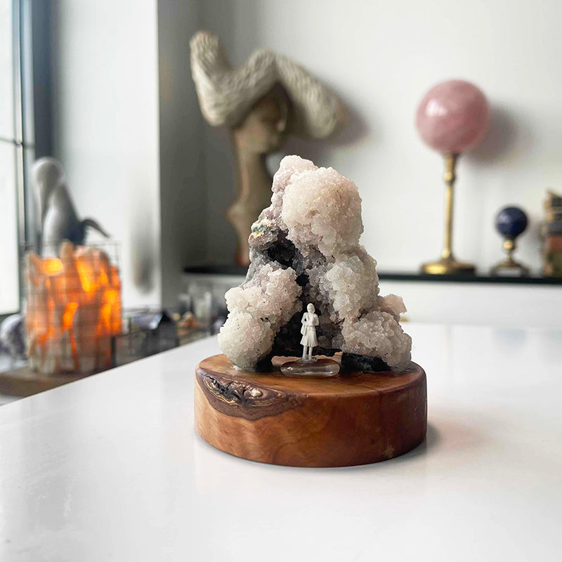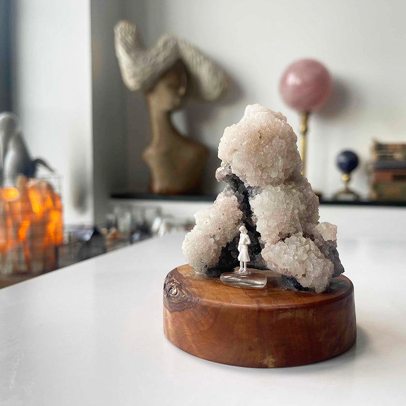 Bu değerli kristalin içinde, genç bir kadının hayatın getirdiği yorgunluk ve kırgınlıkları geride bırakmak için bulduğu sığınak tasvir edilmiştir. "Korunuyorum" kadının huzur arayışını ve kendini dış dünyadan soyutlamasını sembolize eder.