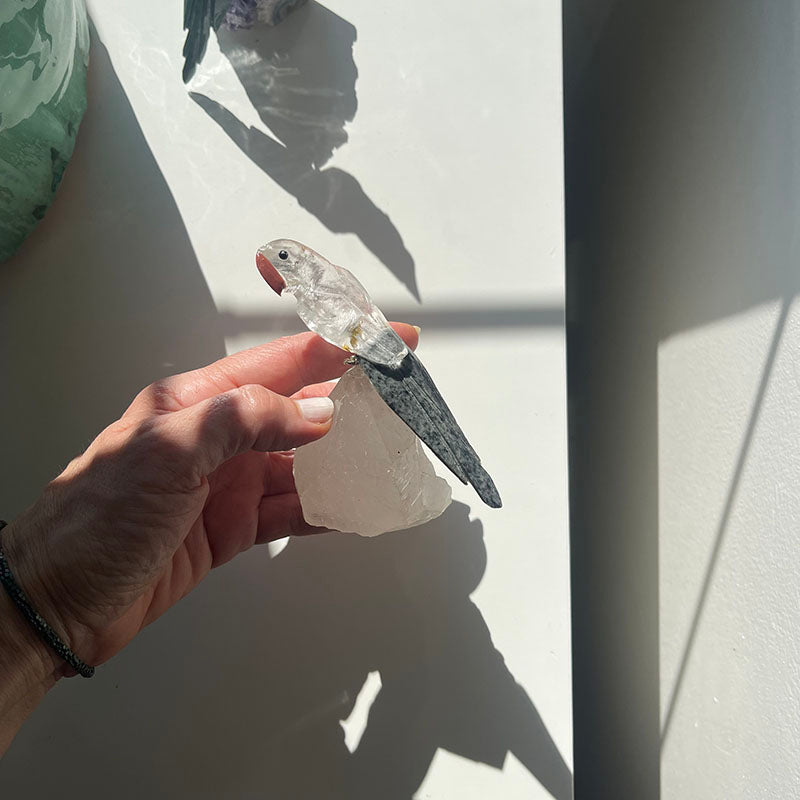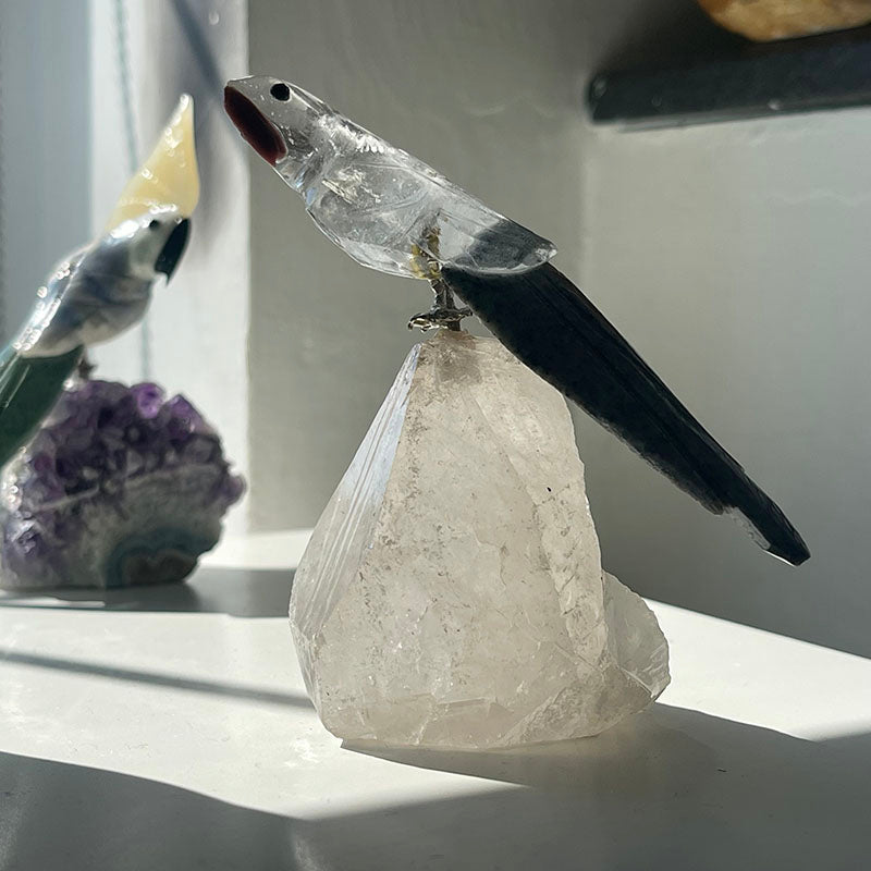 Bu dekoratif kuş; Kristal Kuvars gövdesiyle berraklığı, farkındalığı ve saf niyetin sembolü…