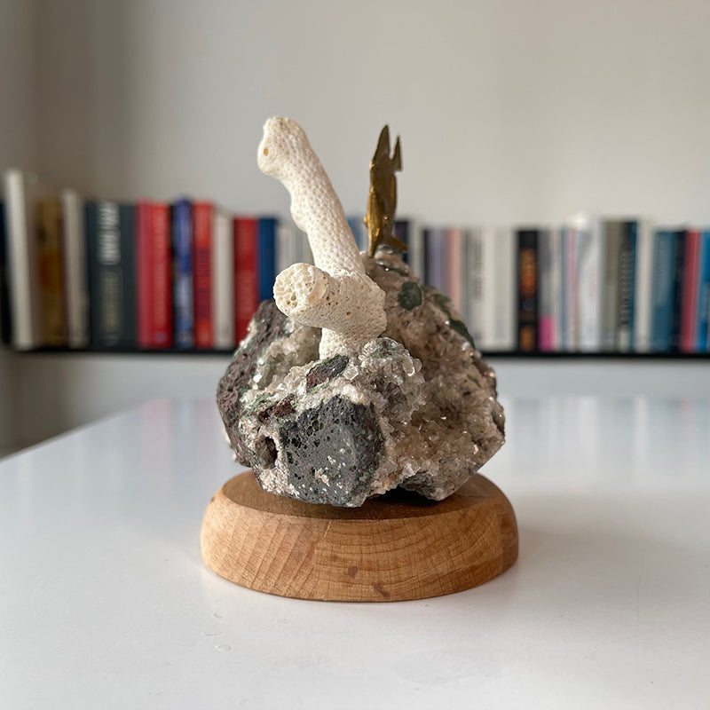 Şifacı Balık, ahşap kaide üzerinde Zeolit taşı ve Mercandan oluşur..