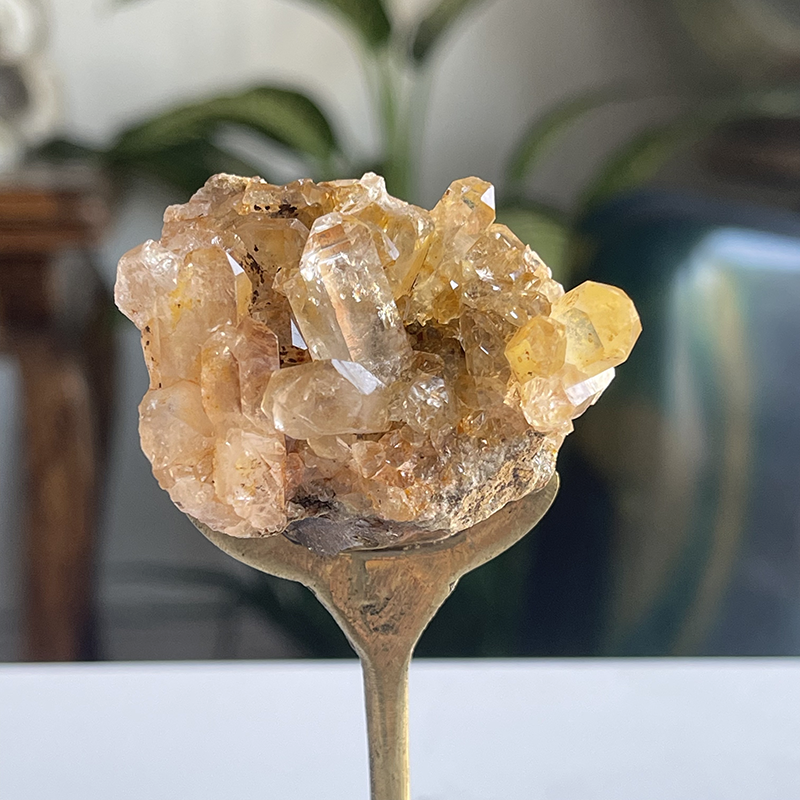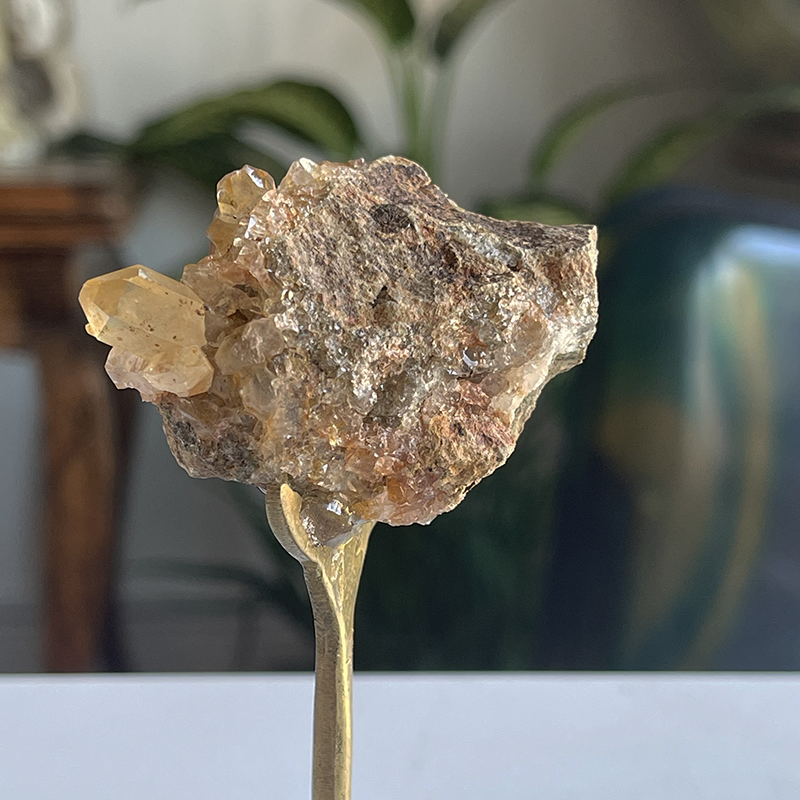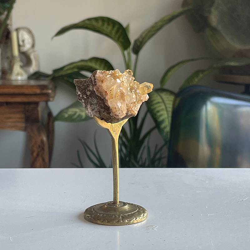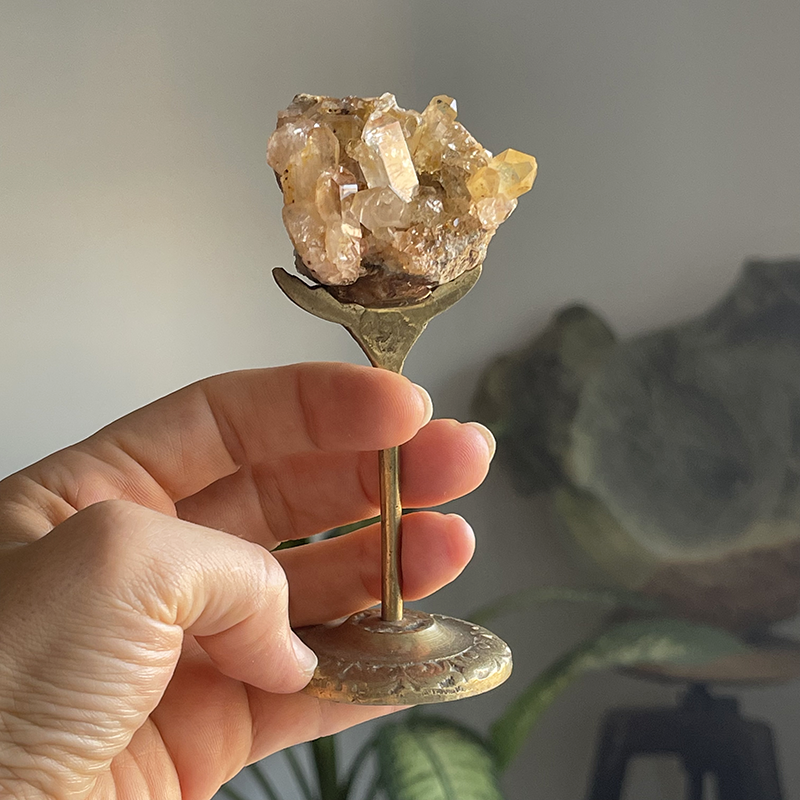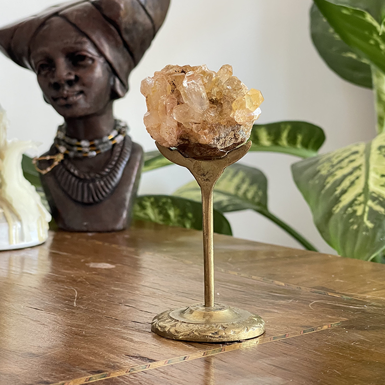 Kristal Kuvars'ın başkalaşmış hali olan Phantom Kuvars, zarif pirinç aparatının üzerinde dekoratif şıklık sunuyor.