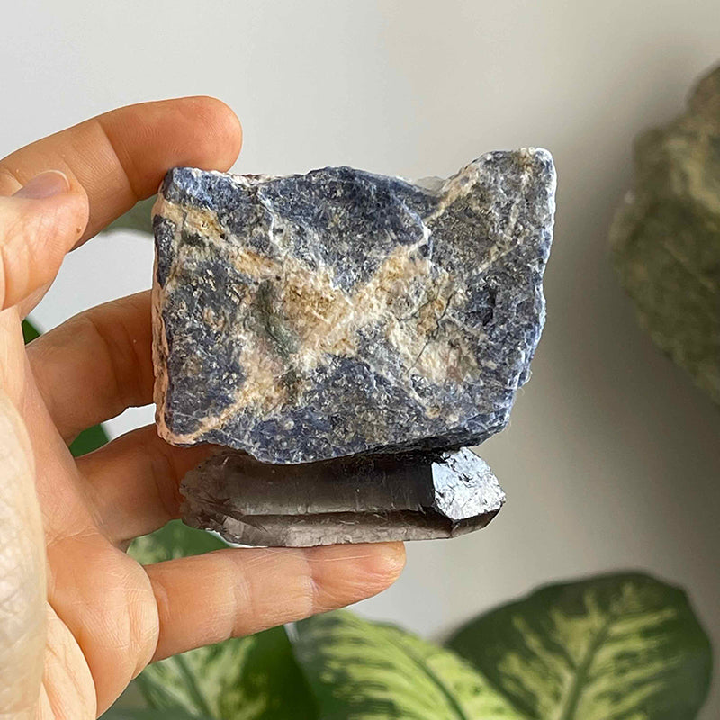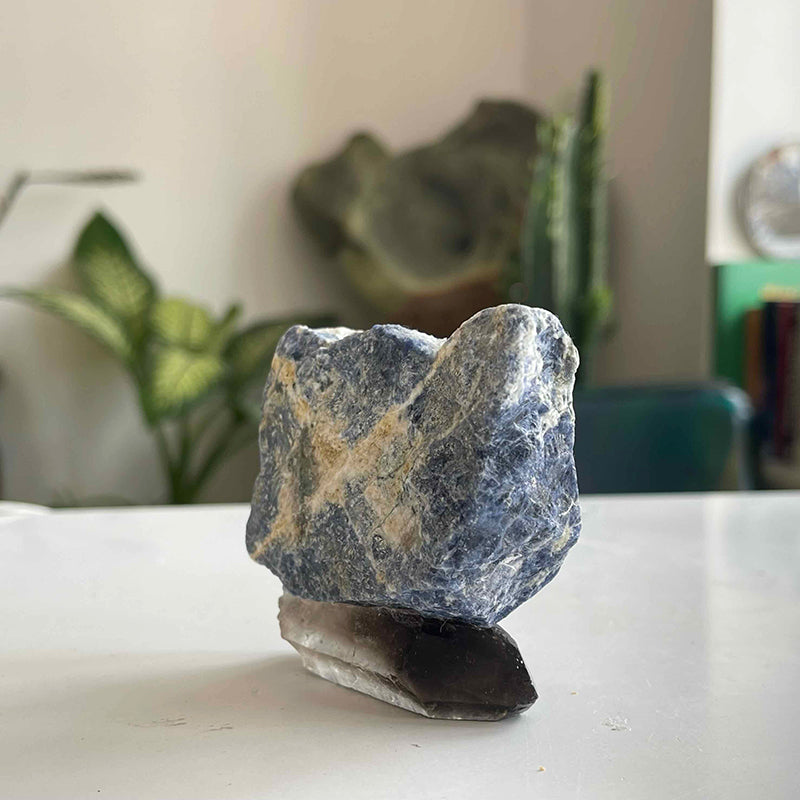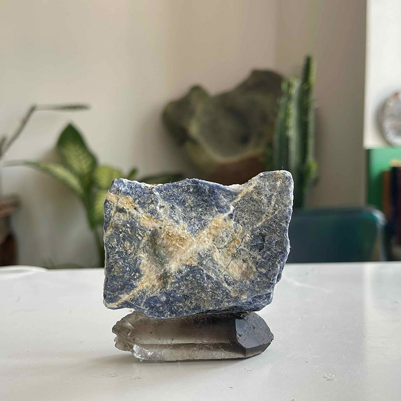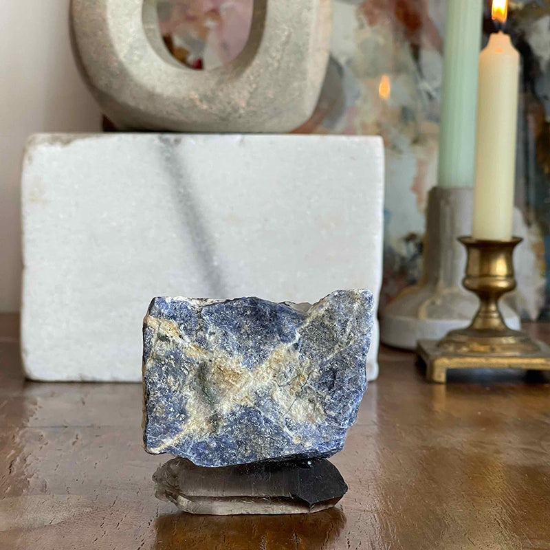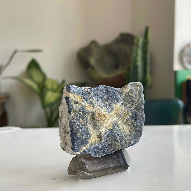 Dumanlı Kuvars kaidesinde Sodalit taşı.
