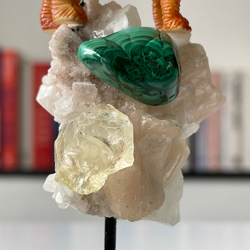 Yeşil tonlardaki Malakit taşının sakinleştirici etkisi vardır ve negatif duyguları pozitife çevirmesiyle bilinir. Ayrıca rahatlatma, uykuya rahat dalma, suçluluk, korku, cesaretsizlik gibi duygulardan arınma, hafızayı güçlendirme özelliklerine de sahiptir.
