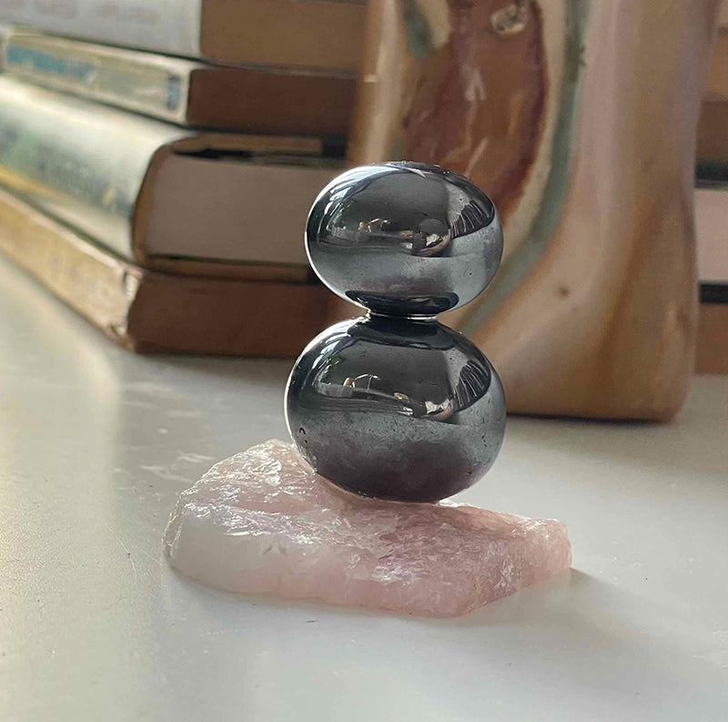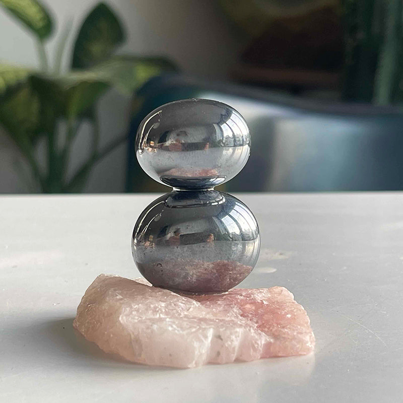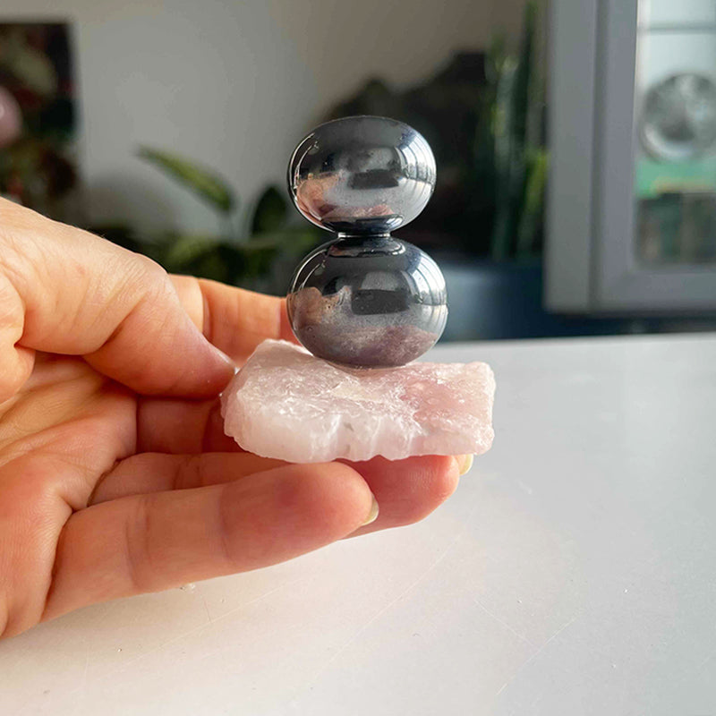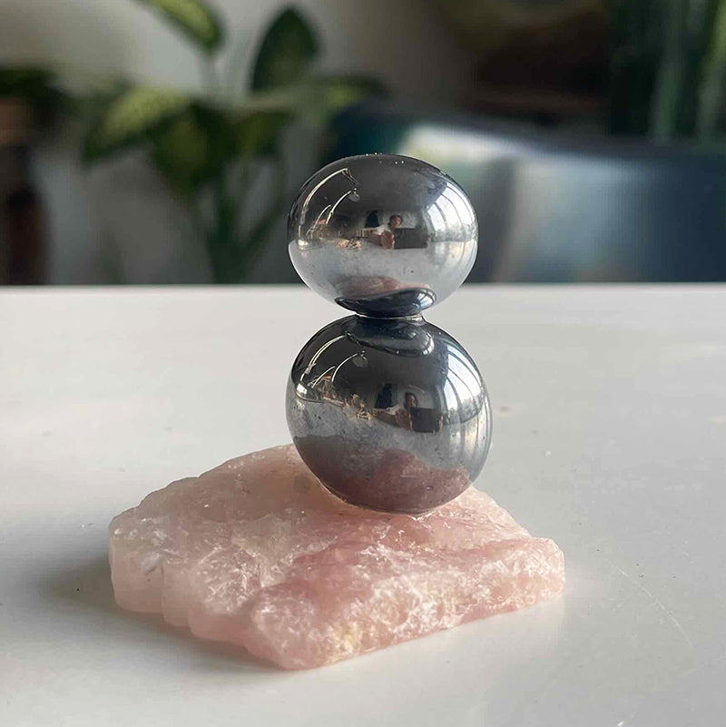 Pembe Kuvars'ın üzerinde, oval formda üst üste iki Terahertz.