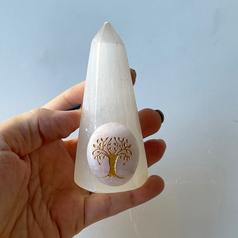 Bu zarif Selenit Kule negatif enerjileri temizler ve iç huzuru artırır, sakinlik ve berraklık getirir. İçsel enerjinizi dengelemek ve zihinsel huzur bulmak için mükemmel bir araçtır.