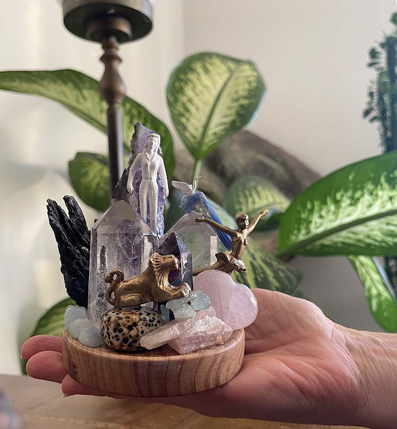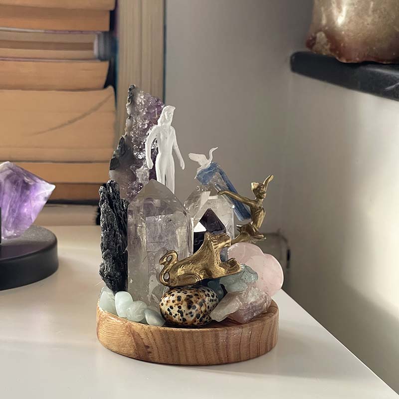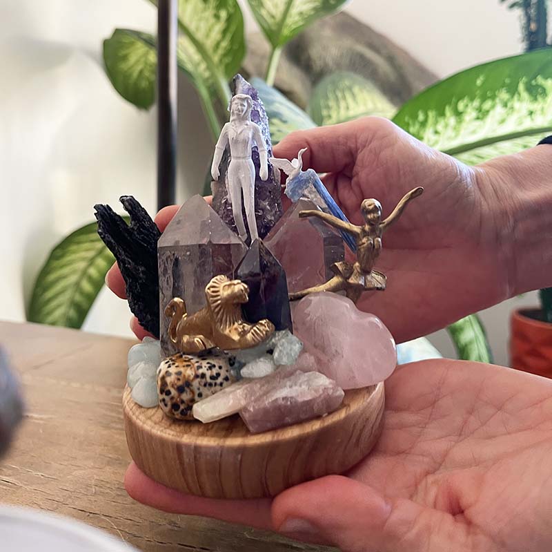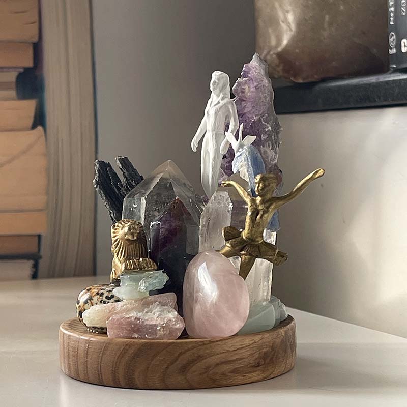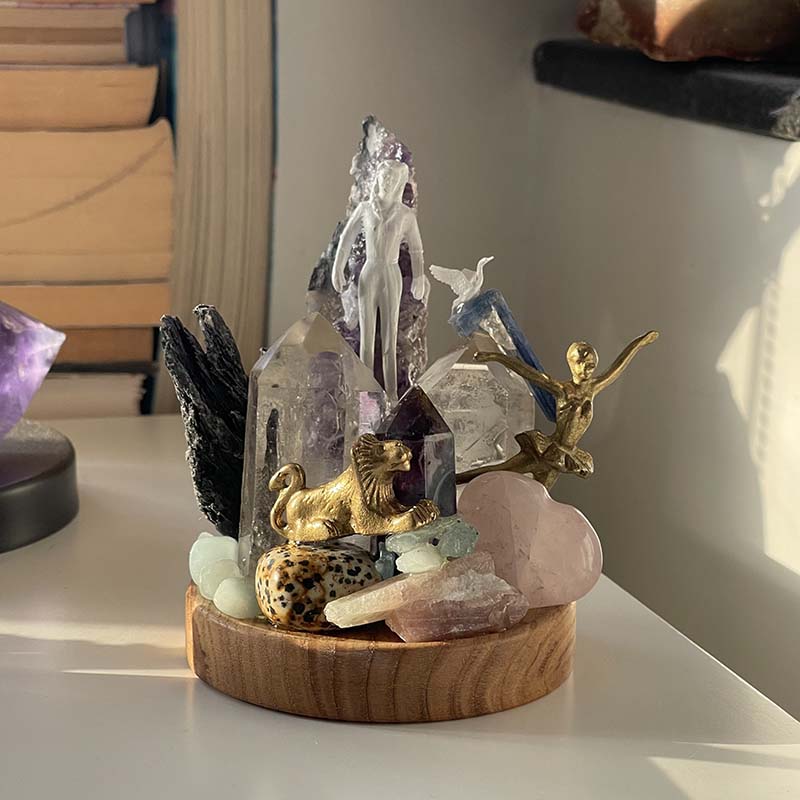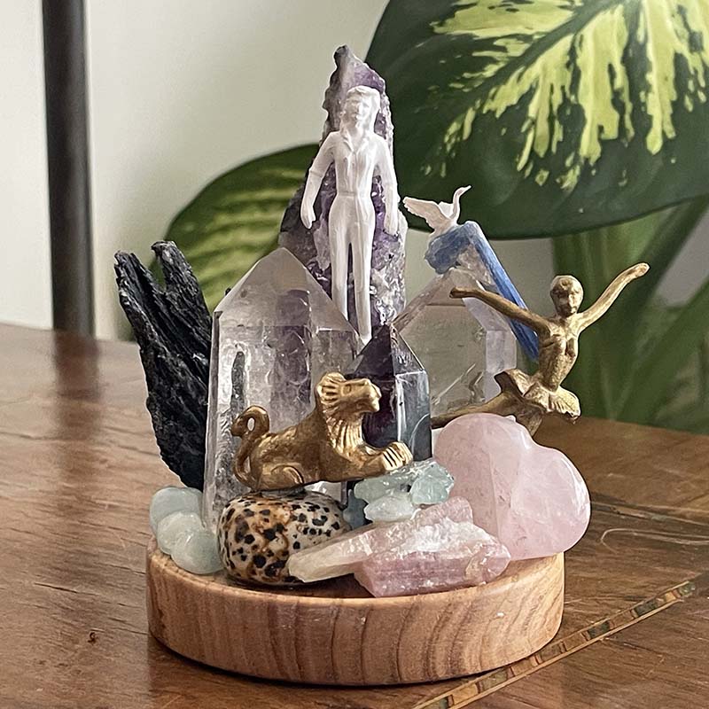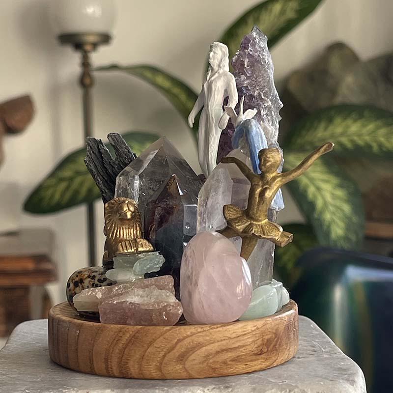 Bu çalışma, yaşamın içindeki her unsurun bir arada bulunmasının gerekliliğini ve oldukça anlamlı olduğunu hatırlatır. Kadın figürünün etrafını çevreleyen kristaller, hayatın binbir rengini ve dokusunu temsil eder. Saf sevgi (pembe kuvars), berrak düşünceler (florit), koruma ve yenilenme (kyanit), cesaret (jasper ve aslan), dinginlik (ametist), ve özgürlük ( kuş figürü), hep birlikte bir yaşam hikayesinin parçalarını oluşturur.