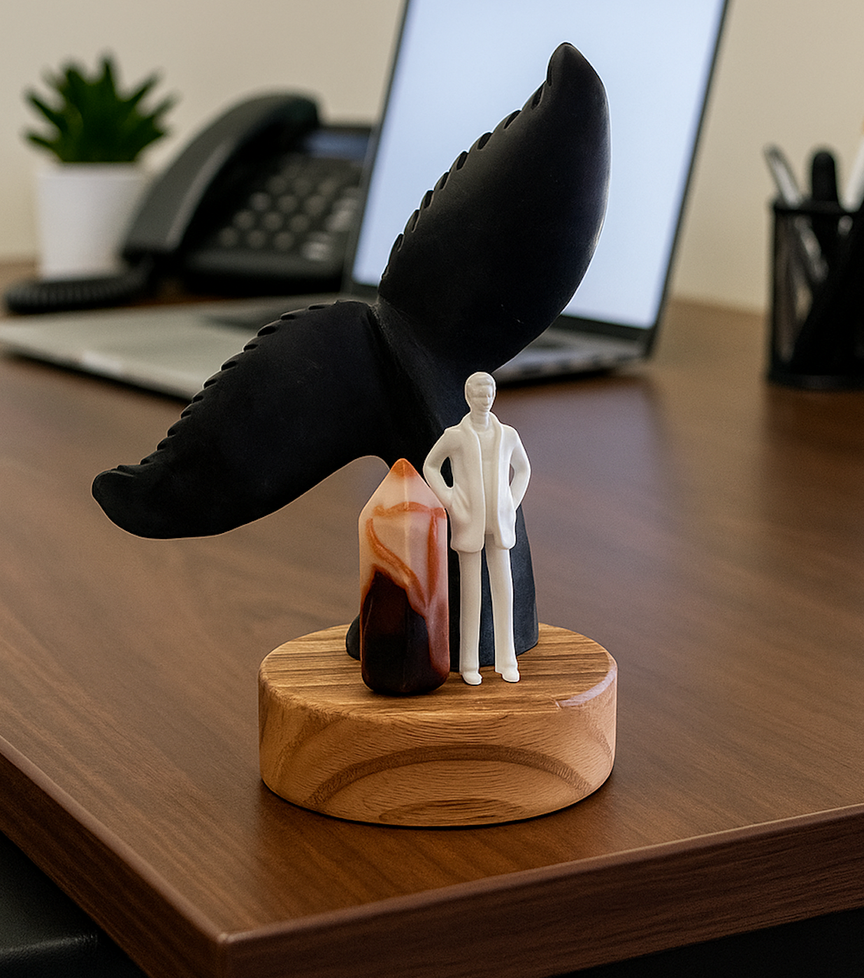 Afrikalı sanatçı E. Madziyanyika'nın Zimbabve'ye özgü bir taş olan Springstone'dan oyarak yaptığı balina kuyruğu heykeli, derin bir anlam taşıyor. Bazı inanışlarda şans getirdiğine inanılan balina kuyruğu, denizlerin bilgeliğini simgelerken; hayatın zorluklarına karşı gösterilen direnci, esnekliği ve içsel gücü temsil ediyor.