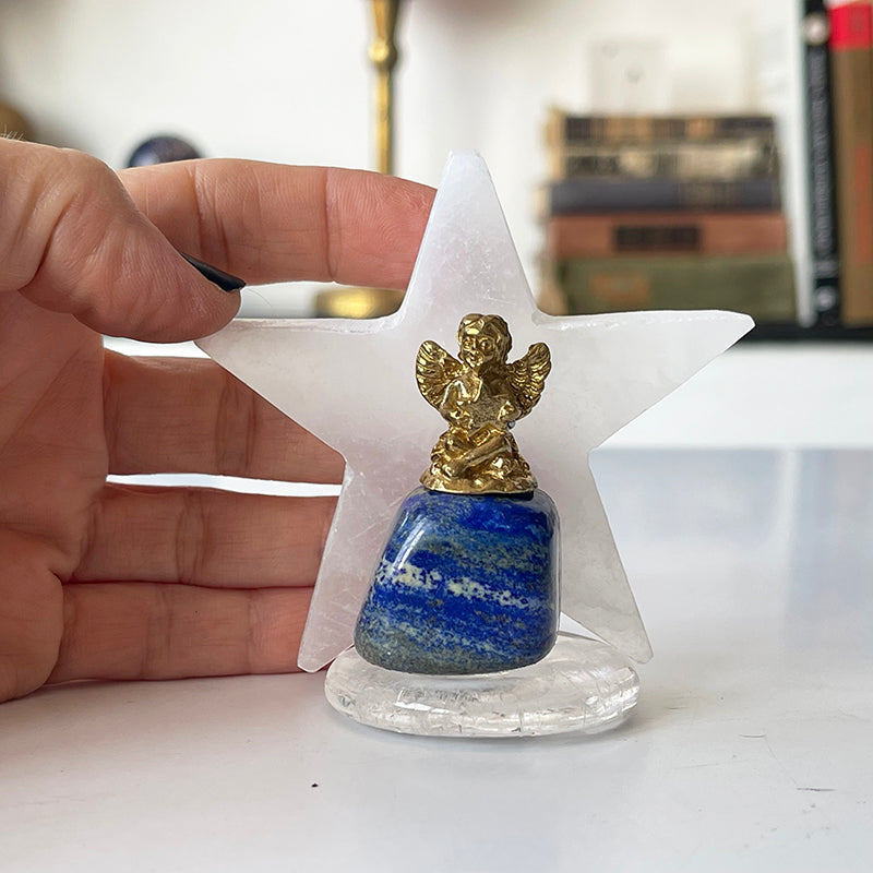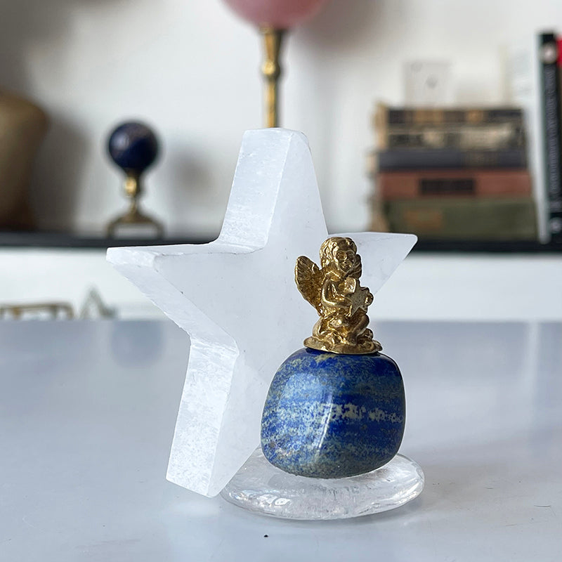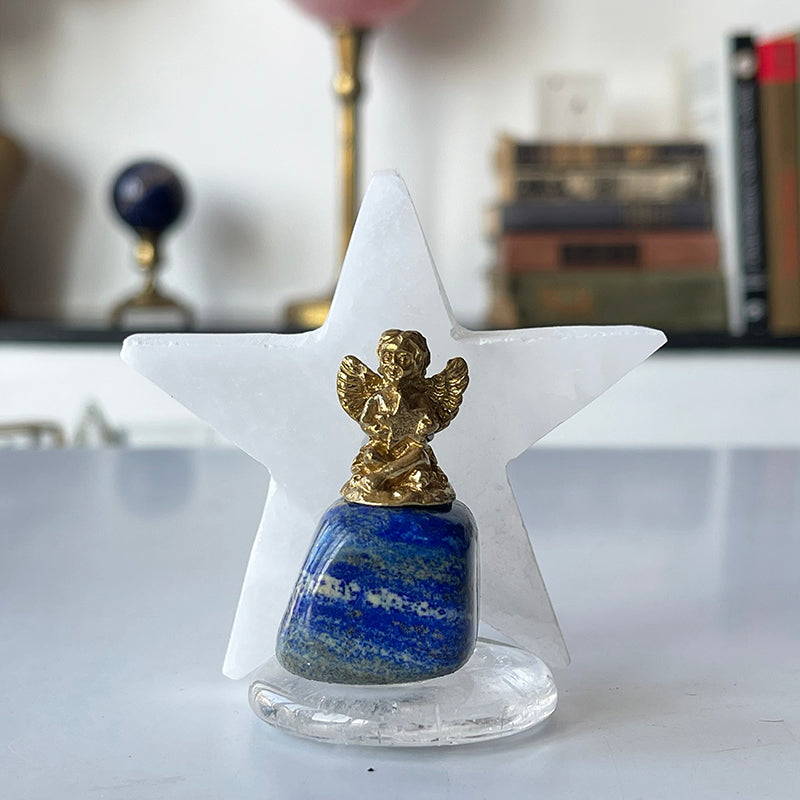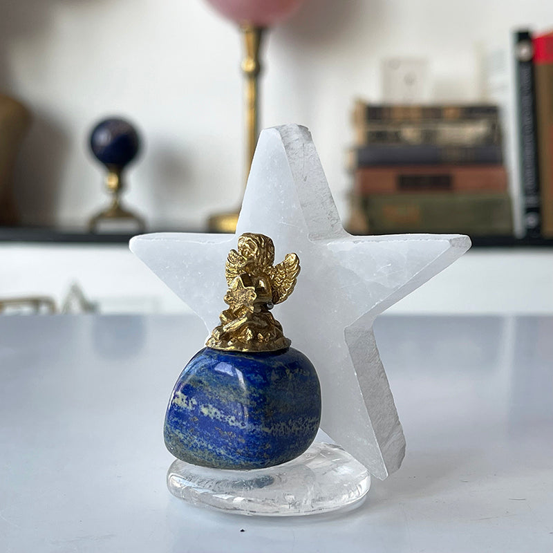 Tasarımın temelini oluşturan Selenit kristali, saf beyaz rengi ve ışıltılı yapısıyla bilinir. Bu kristal, enerjiyi temizler ve pozitif bir atmosfer yaratır. Ev veya ofis içindeki negatif enerjiyi uzaklaştırarak huzur ve dinginlik getirir.